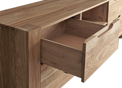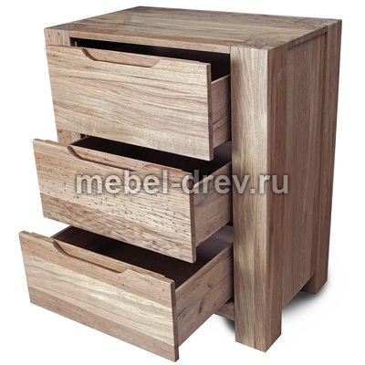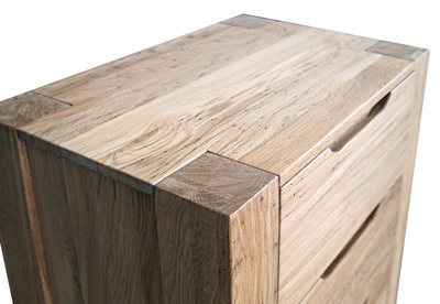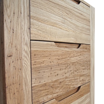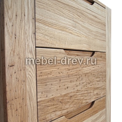 Небольшой узкий комод из массива дуба в оригинальном и модном стиле Лофт. У комода три ящика на выдвижных направляющих. В выдвижных ящиках установлены направляющие европейского производства Hettich. Направляющие снабжены доводчиком и механизмом бесшумного открытия и закрытия шкафов. Изделия покрыты маслом на водной основе, что позволяет сохранить и показать в выгодном свете природную фактуру дерева. Такая отделка фасадных поверхностей не скрывает многообразие природного цветового различия древесины дуба, а также сучки, маленькие трещинки и червоточины (имитация искусственного старения).