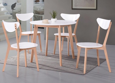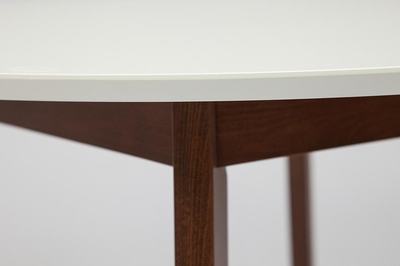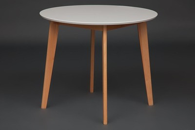 Современный обеденный стол в скандинавском стиле. Небольшой круглый столик, нераздвижной, удобен для любой кухни или гостиной. Сделан из натурального бука, столешница из МДФ, удобен, практичен в использовании. Стол представлен в 2 цветах основания: натуральный бук и коричневый, столешница белая.