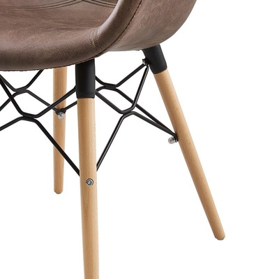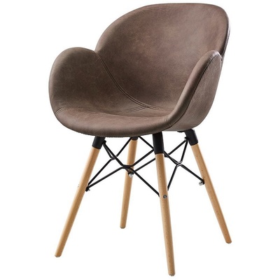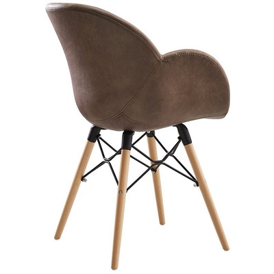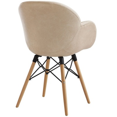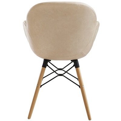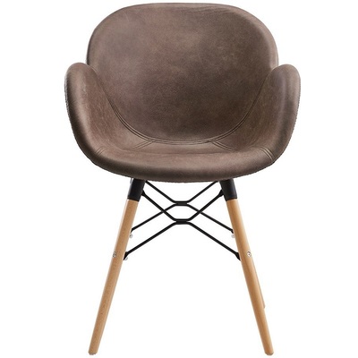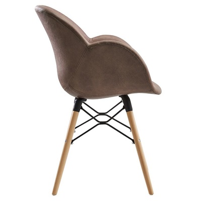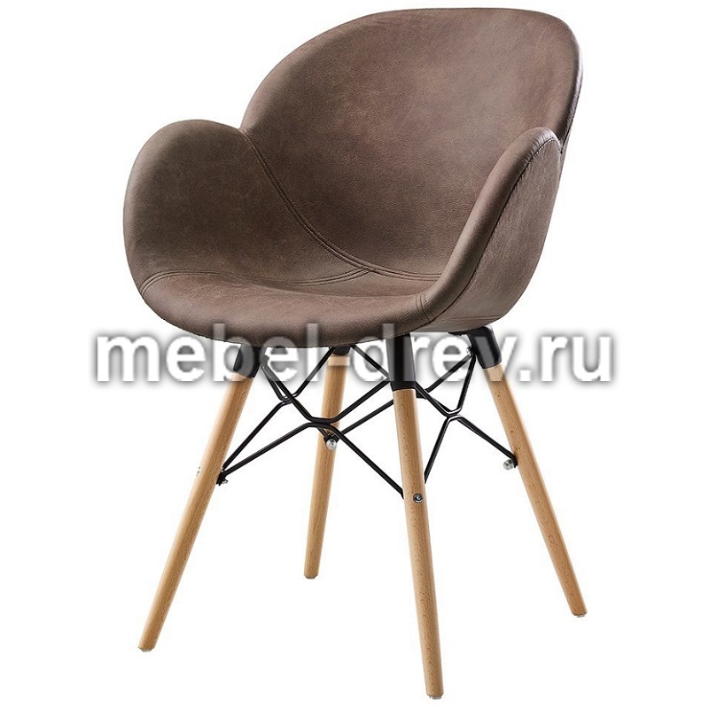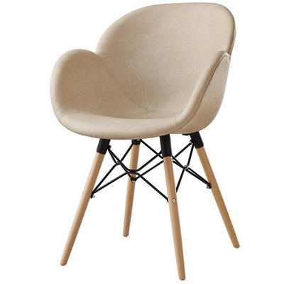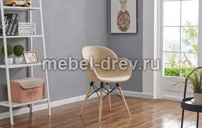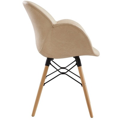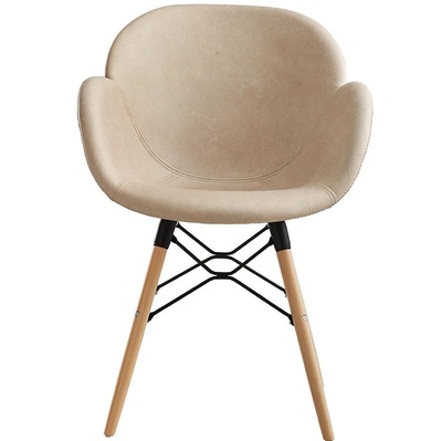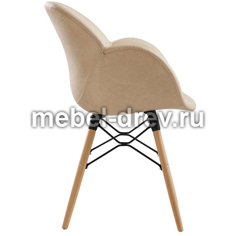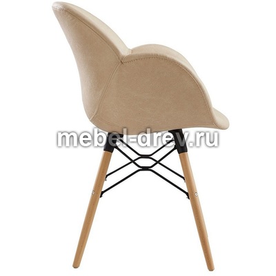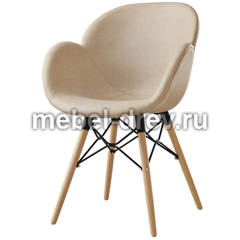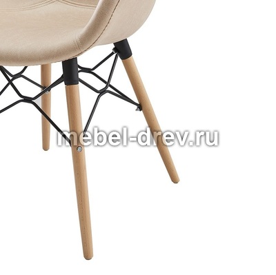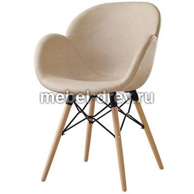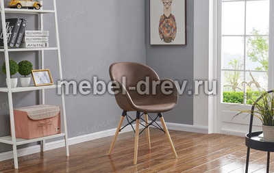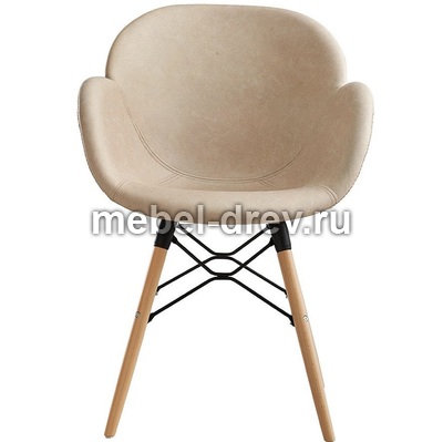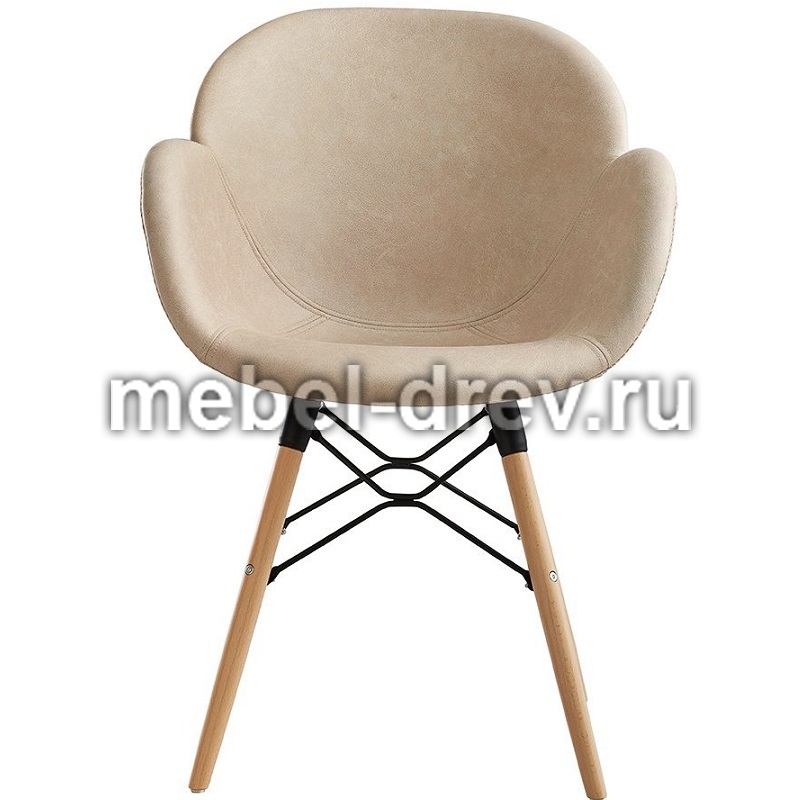 Дизайнерский стул на деревянном каркасе с оригинальным сиденьем и спинкой, эксклюзивный дизайн Claudio Bellini. Каркас стула на деревянных ножках и металлической опоре, удобная спинка и сиденье сделаны в виде полукресла и обиты светлой тканью в бежевом или коричневом цвете.