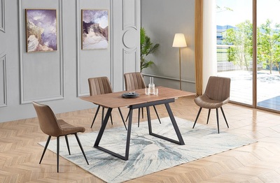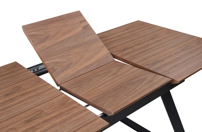 Современный деревянный раскладной стол для кухни или гостиной. Стол сделан на каркасе из металла, столешница шпонированный мдф, стол надежен и удобен в использовании. Стол раскладной, с помощью вкладки под верхней столешницей раскладывается со 120 см до 160 см. Механизм раскладки "бабочка".