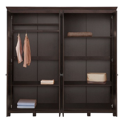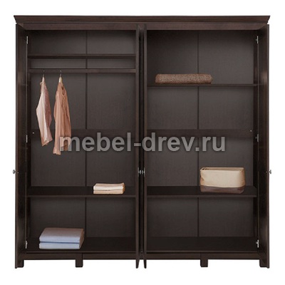 Большой шкаф для одежды Рауна 40 подойдет и для спальни и для прихожей. Изготовлен из массива сосны, внутреннее наполнение шкафа-два сдвоенных отделения: в одном отделении штанга для платья и полочки, во втором отделении только полочки, все можно менять местами. Коллекцию Рауна отличают прямые выверенные линии и правильные геометрические формы, что дополнительно подчеркивает благородный окрас шкафа в цвете "колониал". Дополняет шкаф по стилю фурнитура немецкого производства. Серия Рауна выкрашена лакокрасочными материалами на водной основе, которые сохраняют натуральный вид древесины сосны и ее экологическую чистоту.
