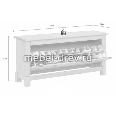 Тумба под обувь из коллекции мебели Рауна белорусской фабрики ММЦ. Тумба комплектуется с подходящими по цвету шкафами, комодами и другими предметами мебели, отлично смотрится в прихожей в классическом интерьере. Тумба изготовлена из натурального дерева и имеет красивую отделку в цвете «бейц». В производстве использованы лакокрасочные материалы на водной основе, которые сохраняют натуральный вид древесины и ее экологическую чистоту, а также подчеркивают красоту натурального дерева.