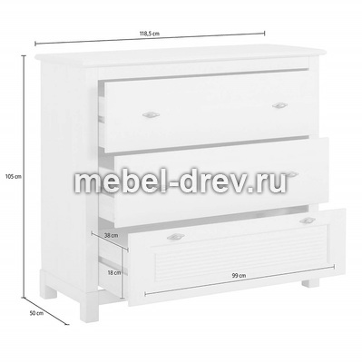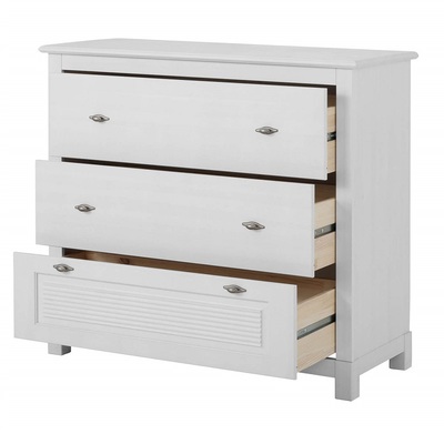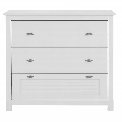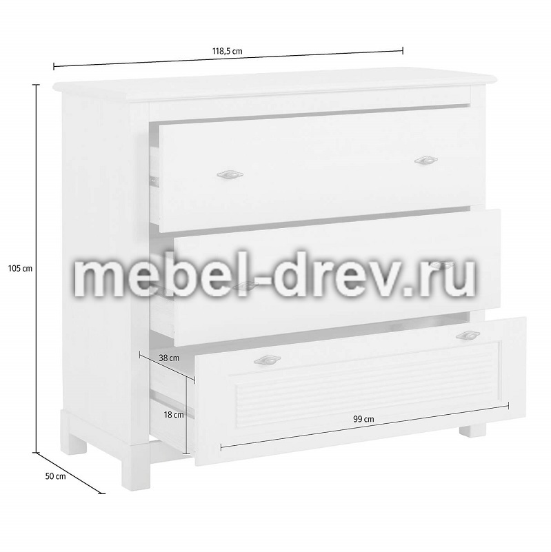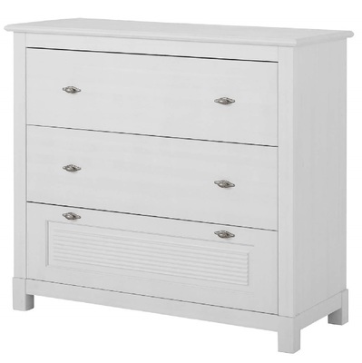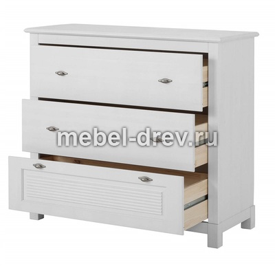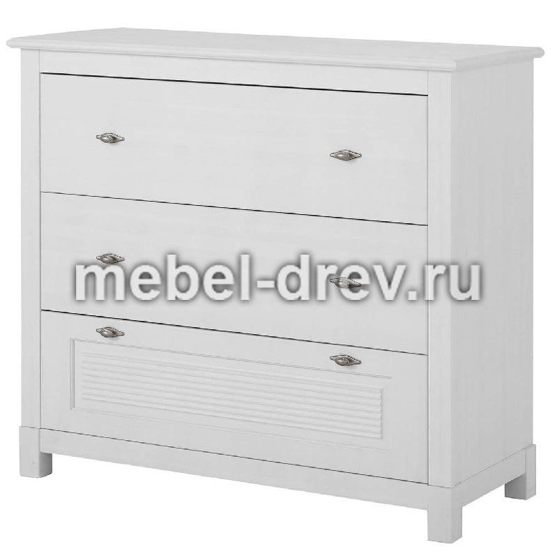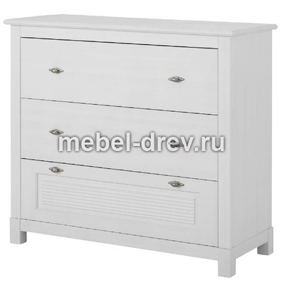 Небольшой комод с ящиками Рауна 03 производства белорусского завода ММЦ. Комод сделан из натурального дерева, массива сосны, окрашен в легкий и воздушный белый цвет. У комода три выдвижных ящика на металлических направляющих. Комод удобный и вместительный, украсит любую комнату, как гостиную, так и спальню и прихожую. При изготовлении комода использовались лакокрасочные материалы на водной основе, которые сохраняют натуральный вид древесины и ее экологические свойства. Покрытие отлично подчеркивает структуру дерева и способствует предотвращению проникновения грибка и влаги. Мебель фабрики ММЦ соответствует европейскому стандарту безопасности детских игрушек EN71-3, что позволяет использовать ее в том числе для обстановки детской комнаты.