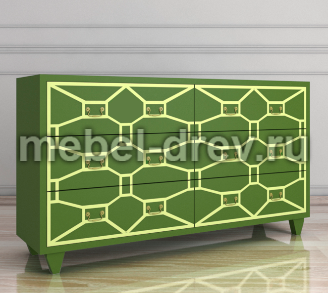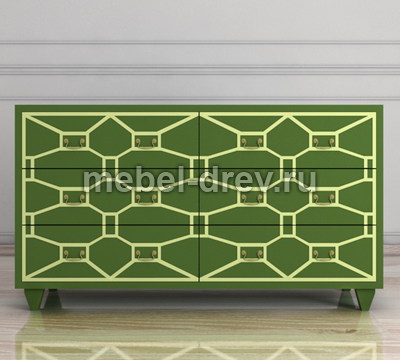 Большой вместительный комод Эмеральд, изюминка которого- необычный дизайн фасада изделия. Смотрится изысканно и благородно, в стиле модерн, по проекту бельгийских дизайнеров. Сделан из массива березы. У комода 6 вместительных выдвижных ящиков, для белья и различных вещей.