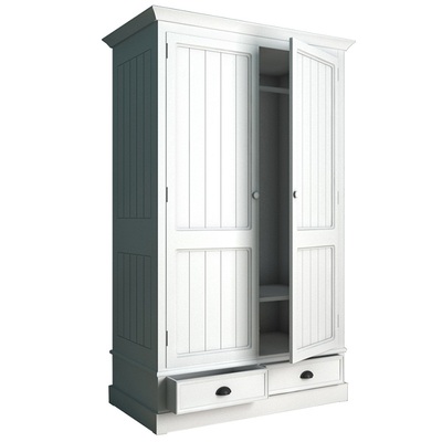 Двустворчатый распашной шкаф Палермо в лаконичном, строгом дизайне. Нежное цветовое решение будет прекрасным дополнением интерьера не только в стиле Кантри и Прованс или классики, но и других благодаря своему дизайну. Наполнение шкафа: штанга для платья и полочка, внизу 2 выдвижных ящика.