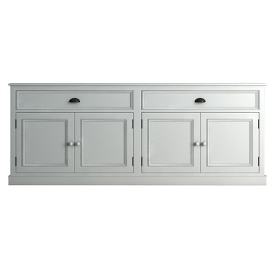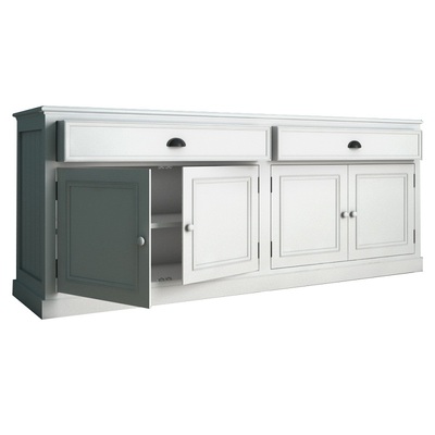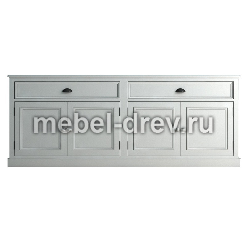 Большой широкий комод Палермо в лаконичном, строгом дизайне. Нежное белое цветовое решение будет прекрасным дополнением интерьера не только в стиле Кантри и Прованс или классики, но и других благодаря своему дизайну. У комода два вместительных выдвижных ящика и четыре распашных дверцы с полочками внутри.