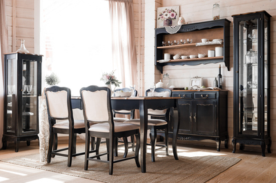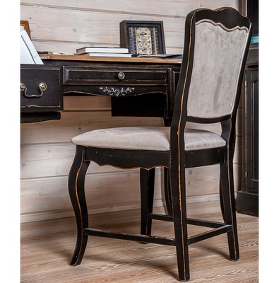 Стул с мягким сиденьем в стиле Прованс, из коллекции Belveder (Бельведер). Сделан из массива березы, в оригинальном черном цвете, с искусственно состаренной поверхностью.