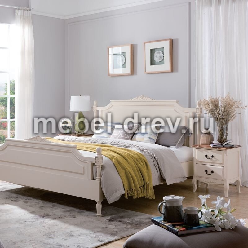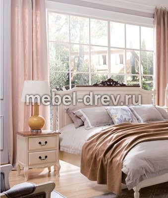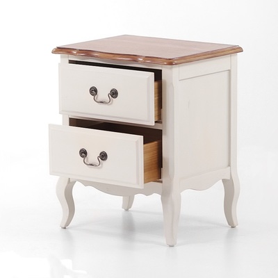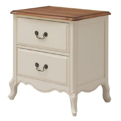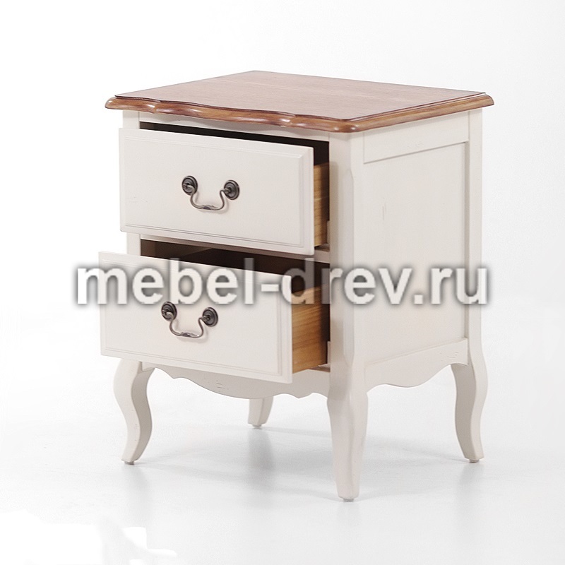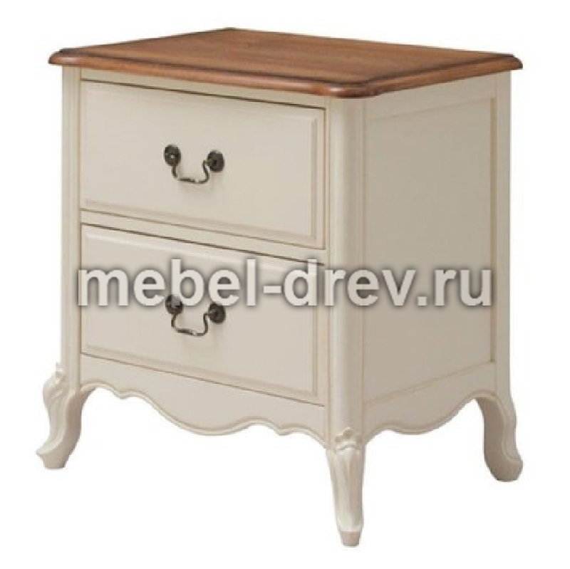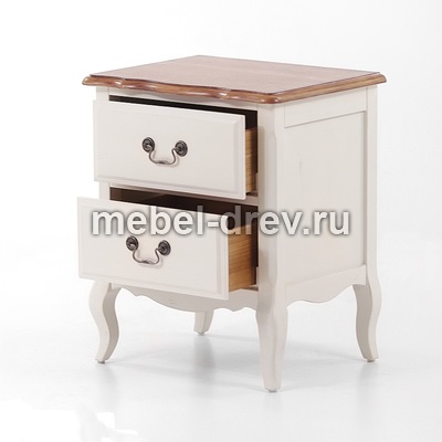 Прикроватная тумба из коллекции Belveder (Бельведер). Сделана из массива березы, в итальянском стиле. С искусственно состаренной поверхностью, в цвете "молочный с эффектом старения". Столешница сделана из ясеня, в контрастном цвете "итальянский орех", с 2 выдвижными ящиками.
