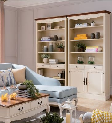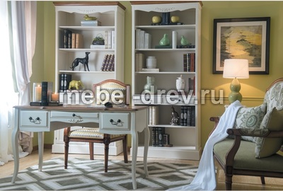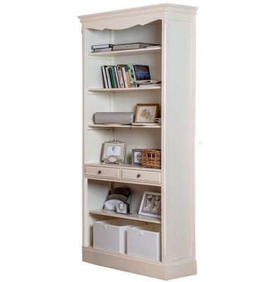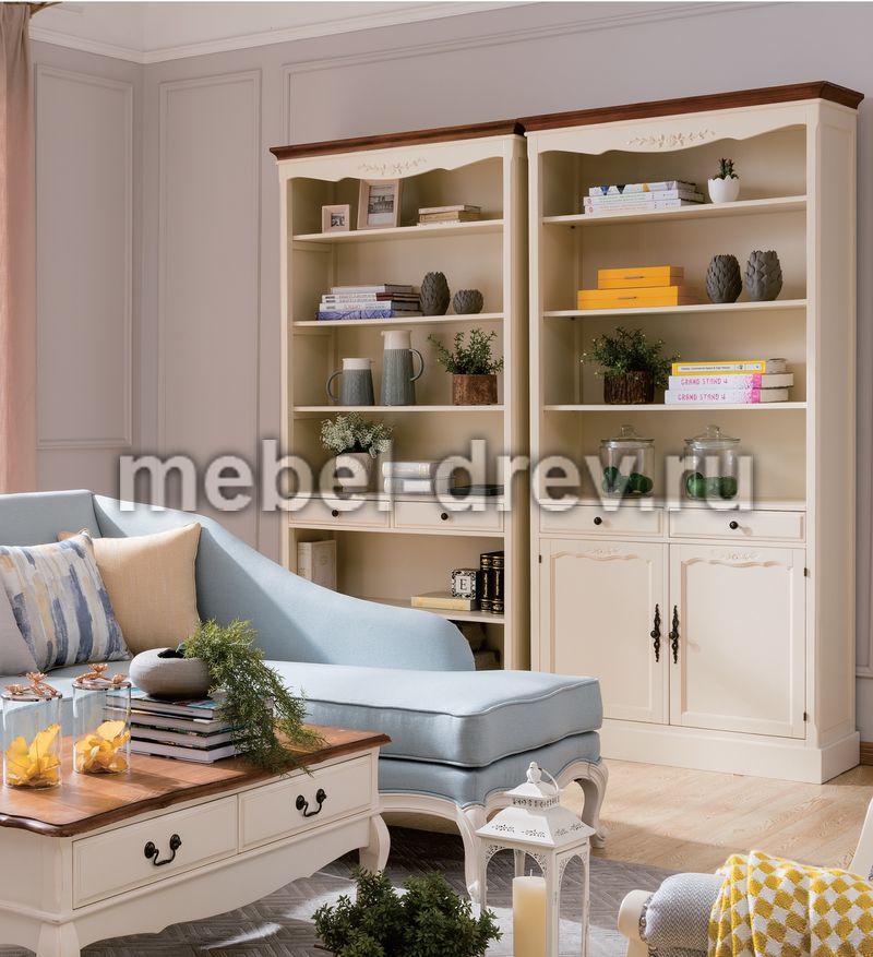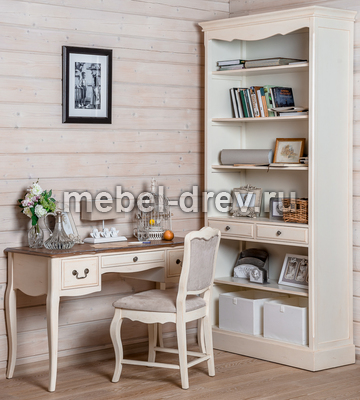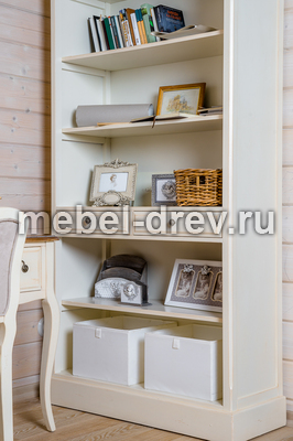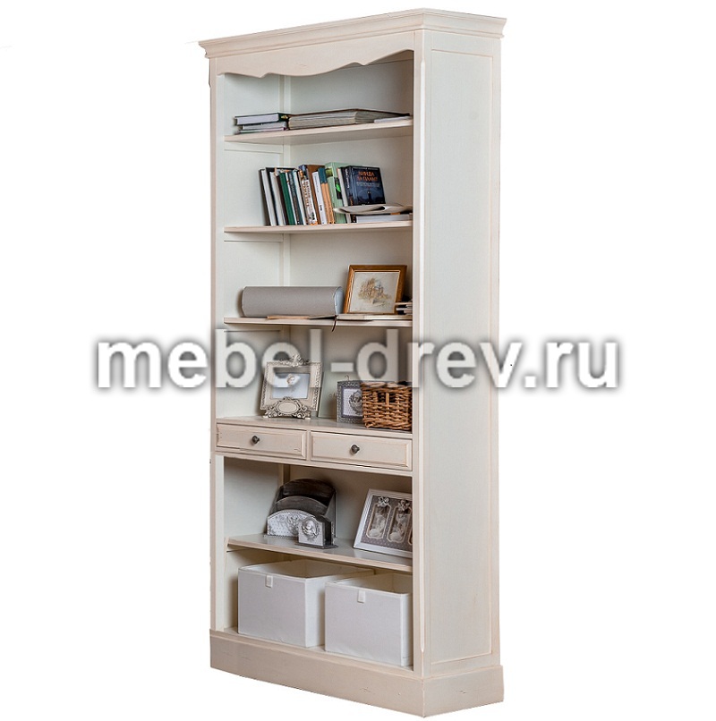 Высокий стеллаж для книг с 2 выдвижными ящиками из коллекции Belveder (Бельведер). Сделан из массива березы, в итальянском стиле. С искусственно состаренной поверхностью, в цвете "белая карамель".