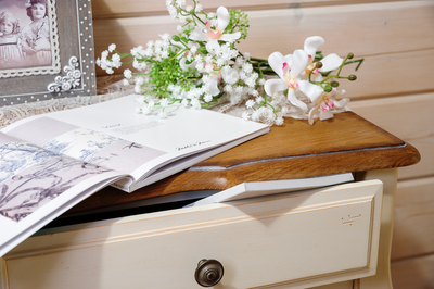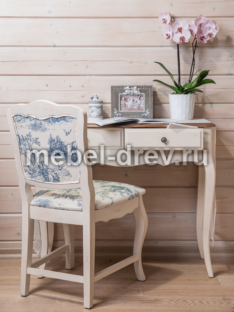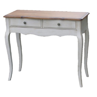 Небольшая консоль из коллекции Belveder (Бельведер). Сделана из массива березы, в итальянском стиле. С искусственно состаренной поверхностью, в цвете "белая карамель". Столешница сделана из ясеня, в контрастном цвете "орех", с 2 выдвижными ящиками под столешницей.