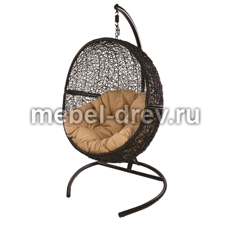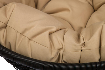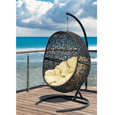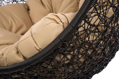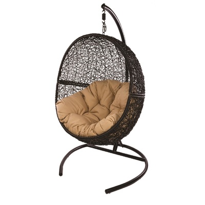 Подвесное плетеное кресло для сада или веранды. Каркас изготовлен из стали, порошковая покраска. Плетение – PE-ротанг (искусственный ротанг) высокого качества (круглый). Подушка-ткань полиэстер, водоотталкивающая.