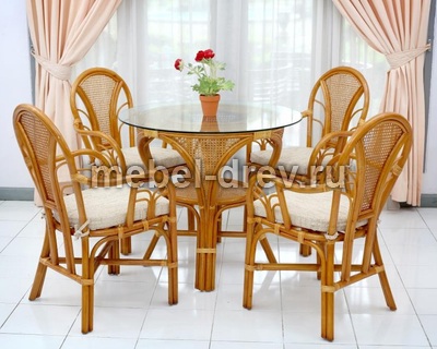 Стол обеденный Мокко для летней веранды, сада или кафе из гибкого, прочного натурального ротанга. Ротанг может выдержать очень большой вес, при этом изделия из него очень легкие.