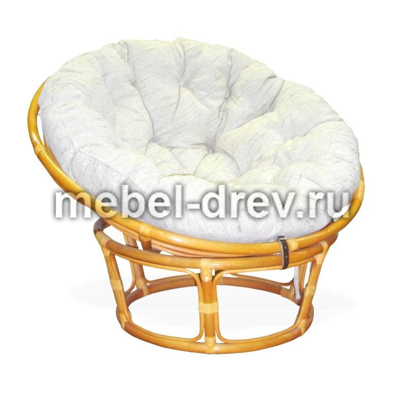 Кресло из натурального ротанга Papasan 23/01, для домашнего уютного отдыха. Гибкий и прочный, натуральный ротанг может выдержать очень большой вес, при этом изделия из него очень легкие. Подушка у кресла из ткани рогожка/шенилл (143), на ремнях.