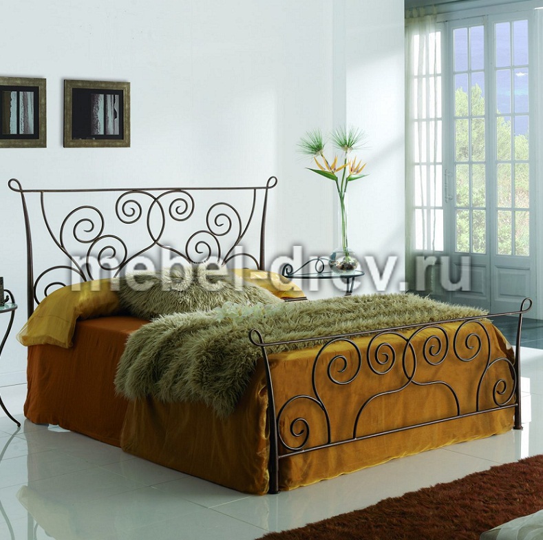 Стильная кровать из металла с применением ажурной ковки, от испанской фабрики Dupen. Кровать надежна, прочна, кованый металл высокого качества, способен выдержать большой вес. Цвет состаренного золота придает кровати благородный вид. Кровать изготавливается в 2 вариантах спального места: 160х200 и 180х200.
