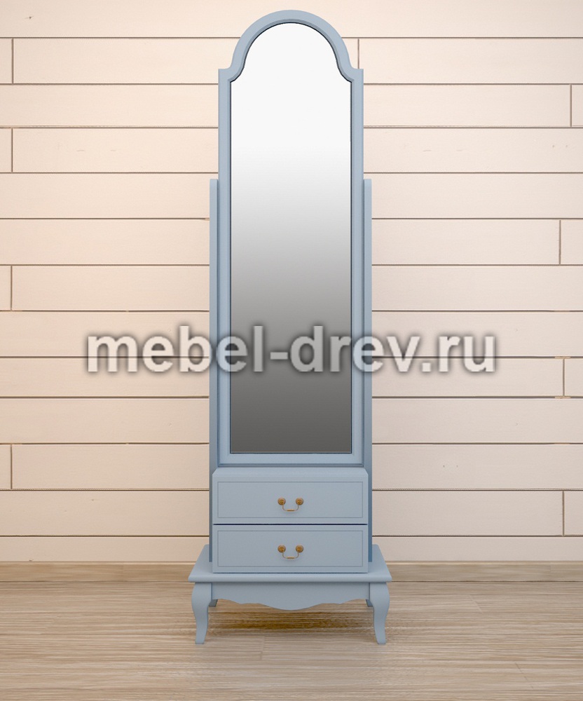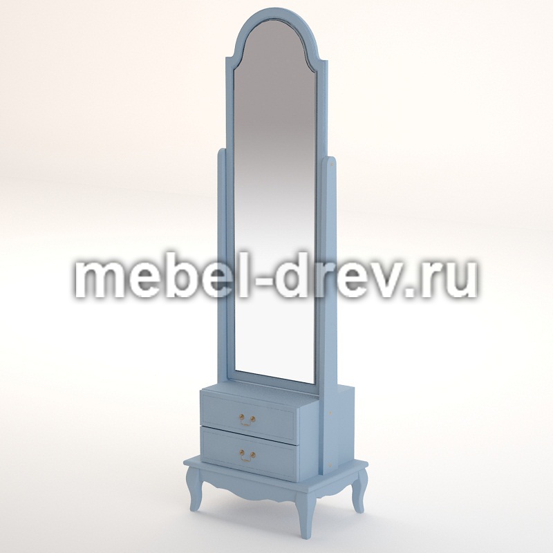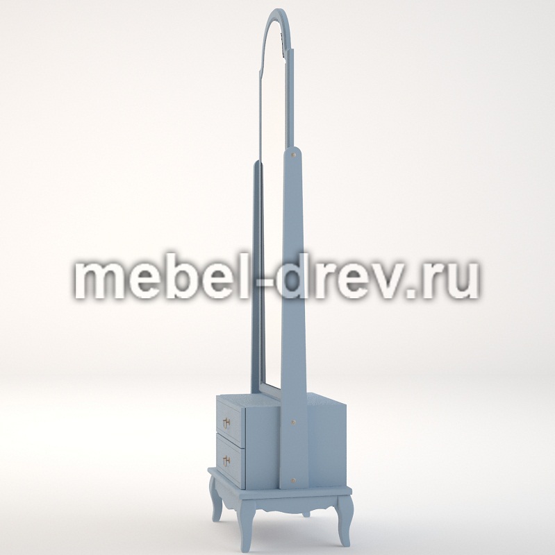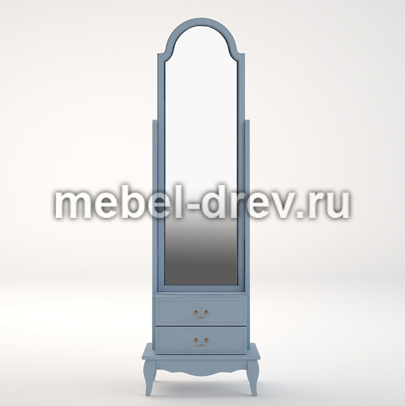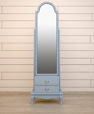 Изысканное напольное зеркало в стиле Прованс в необычном голубом цвете, из коллекции Leontina/Леонтина блю. Сделано из массива березы, с двумя выдвижными ящиками для мелочей. А шикарный голубой цвет мебели выглядит освежающим и создает праздничное настроение.