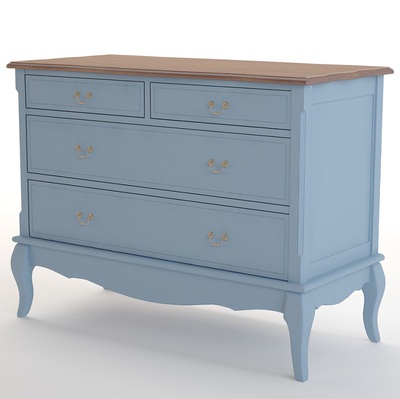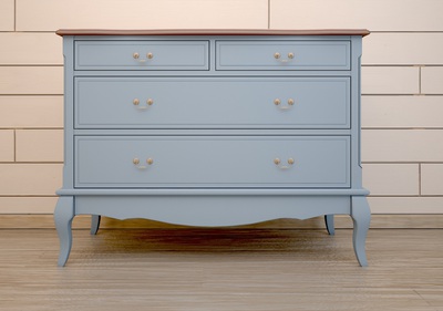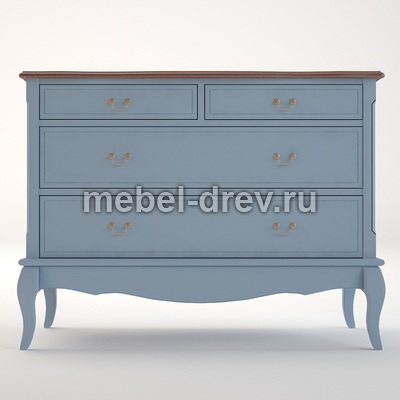 Изящный комод Leontina/Леонтина на изогнутых ножках и с резным подстольем. Сделан в стиле Прованс, с четырьмя выдвижными ящиками. Комод изготовлен из натурального дерева: каркас-массив березы, столешница-ясень. Необычный голубой цвет коллекции Леонтина блю придает интерьеру ощущение беззаботности и покоя, чистоты и благополучия.