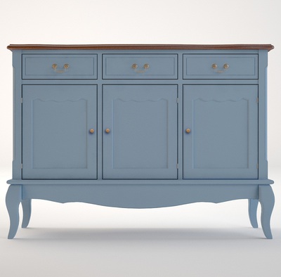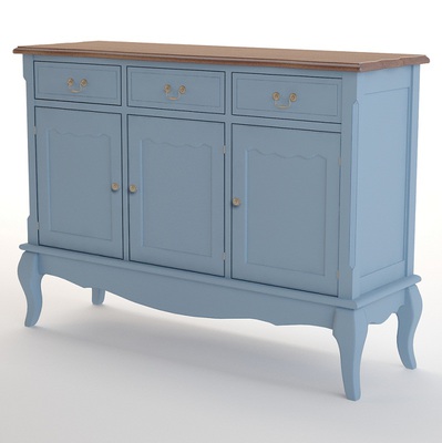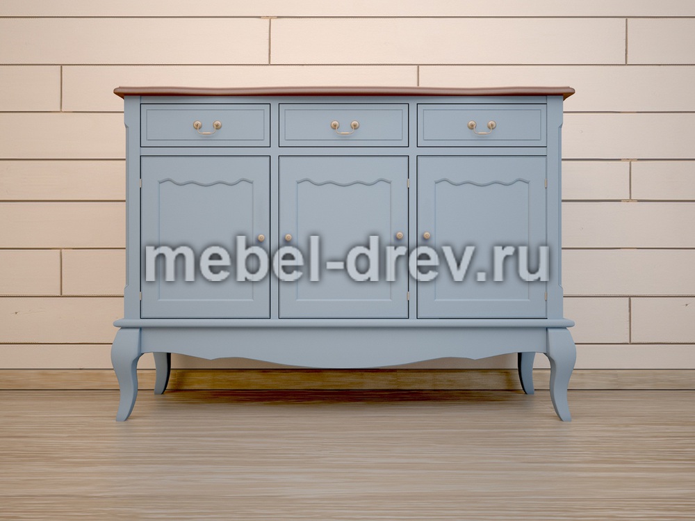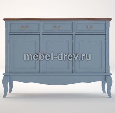 Трехстворчатый комод Leontina/Леонтина на изогнутых ножках и с резным подстольем. Сделан в стиле Прованс, в необычном голубом цвете, с тремя выдвижными ящиками и тремя дверцами. Комод изготовлен из натурального дерева: каркас-массив березы, столешница-ясень. Шикарная мебель из коллекции Леонтина блю выглядит освежающей и создает праздничное настроение.