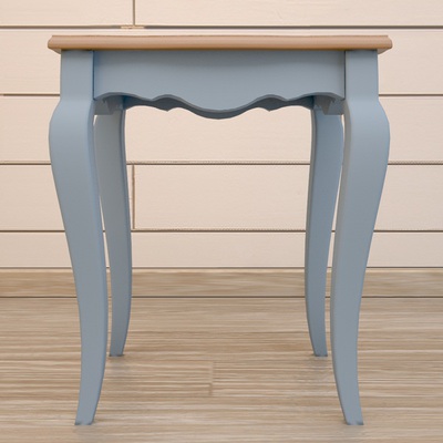 Небольшая консоль на изогнутых ножках Leontina/Леонтина в необычном голубом цвете. Сделана в стиле Прованс, из натурального дерева: каркас-массив березы, столешница-ясень.