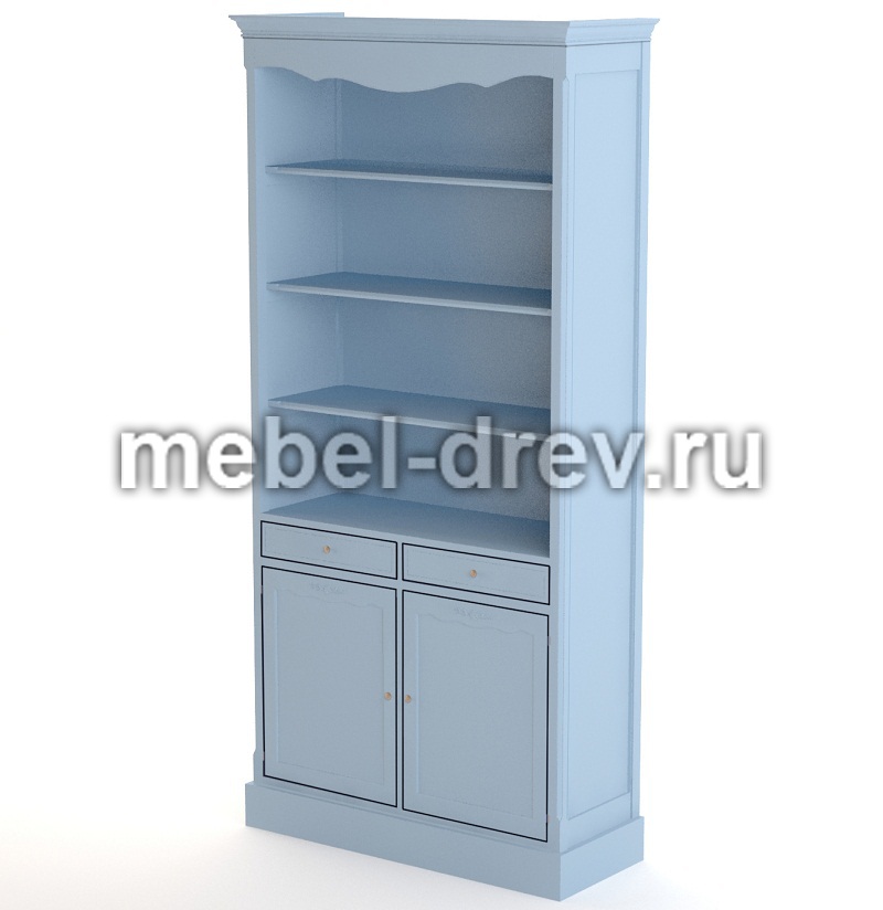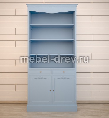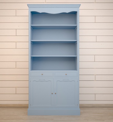 Элегантный стеллаж в стиле Прованс из коллекции Leontina/Леонтина. Стеллаж сделан из массива березы, с двумя выдвижными ящиками и двумя открывающимися дверцами, украшен резьбой по фасадам дверец. А шикарный голубой цвет мебели выглядит освежающим и создает праздничное настроение.