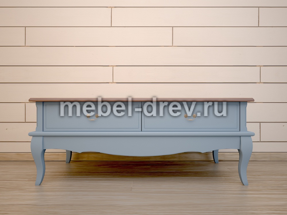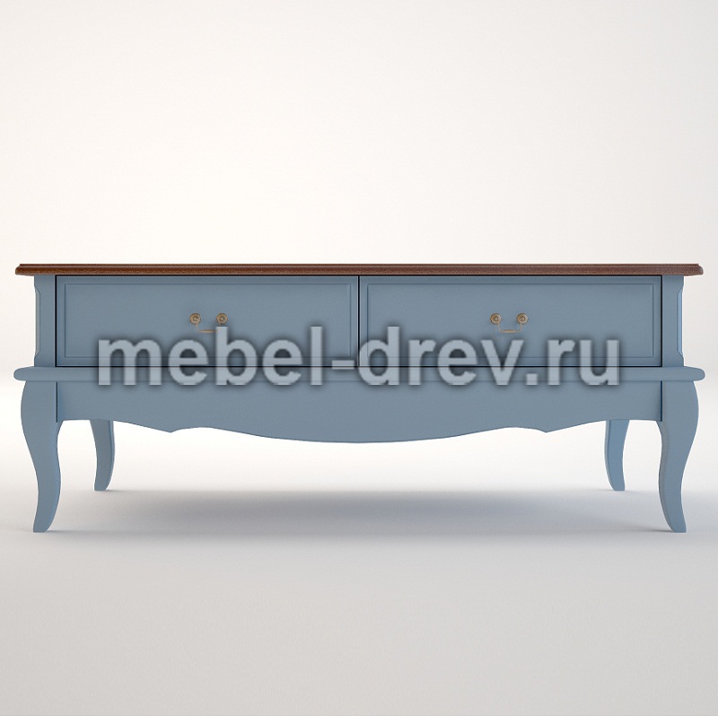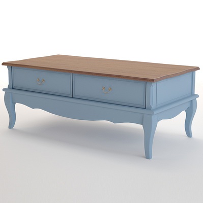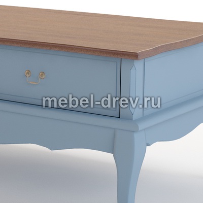 Журнальный стол в стиле Прованс из серии Leontina/Леонтина. Стол прямоугольный, на изящных ножках, с удобными выдвижными ящиками. Изготовлен из натурального дерева: каркас-массив березы, столешница-ясень. Необычный голубой цвет коллекции Леонтина блю придает комнате нежность и очарование.