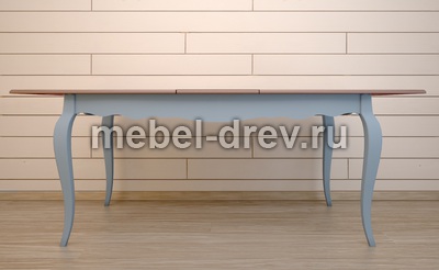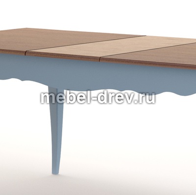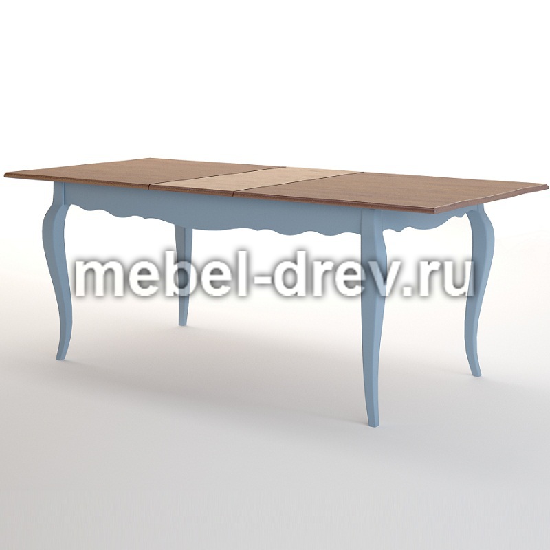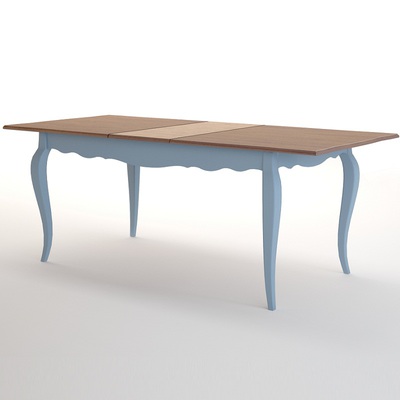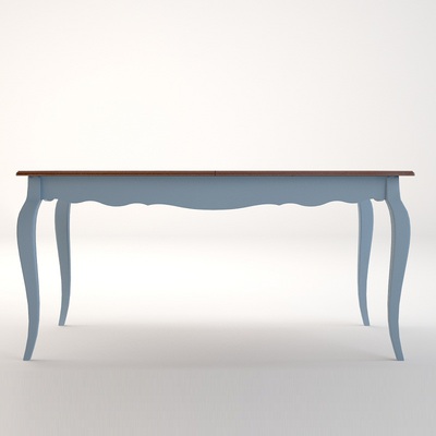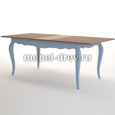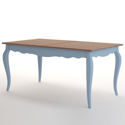 Изящный обеденный стол в стиле Прованс из серии Leontina/Леонтина. Стол на изогнутых ножках, с резным подстольем и выдвижным ящиком. Изготовлен из натурального дерева: каркас-массив березы, столешница-ясень. Необычный голубой цвет коллекции Леонтина блю придает комнате нежность и очарование.