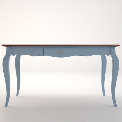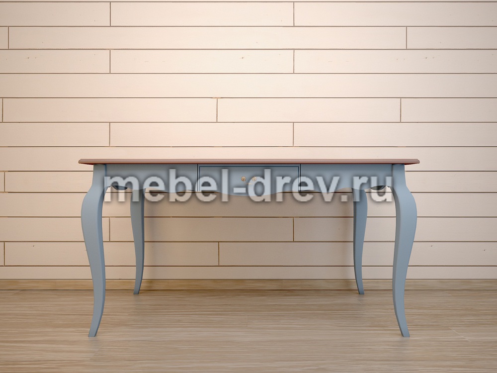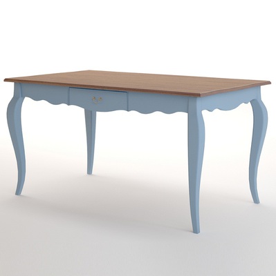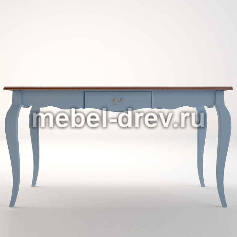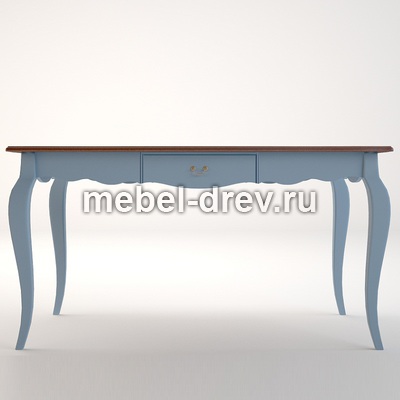 Изящный обеденный стол в стиле Прованс из серии Leontina/Леонтина. Стол на изогнутых ножках, с резным подстольем и выдвижным ящиком. Изготовлен из натурального дерева: каркас-массив березы, столешница-ясень. Необычный голубой цвет коллекции Леонтина блю придает комнате нежность и очарование.