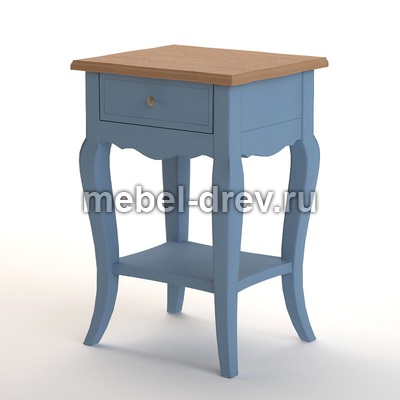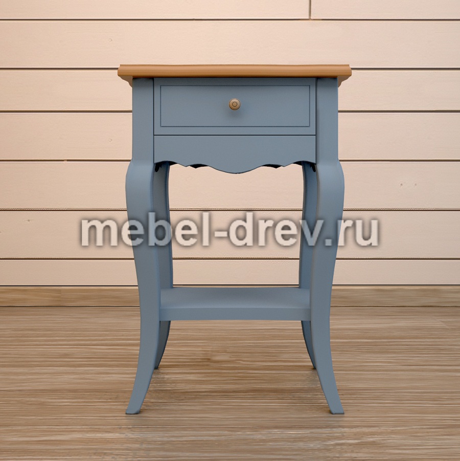Маленькая прикроватная тумба на изогнутых ножках Leontina/Леонтина. Сделана в стиле Прованс, с выдвижным ящиком, из натурального дерева: каркас-массив березы, столешница-ясень.