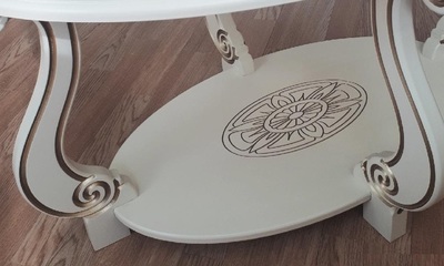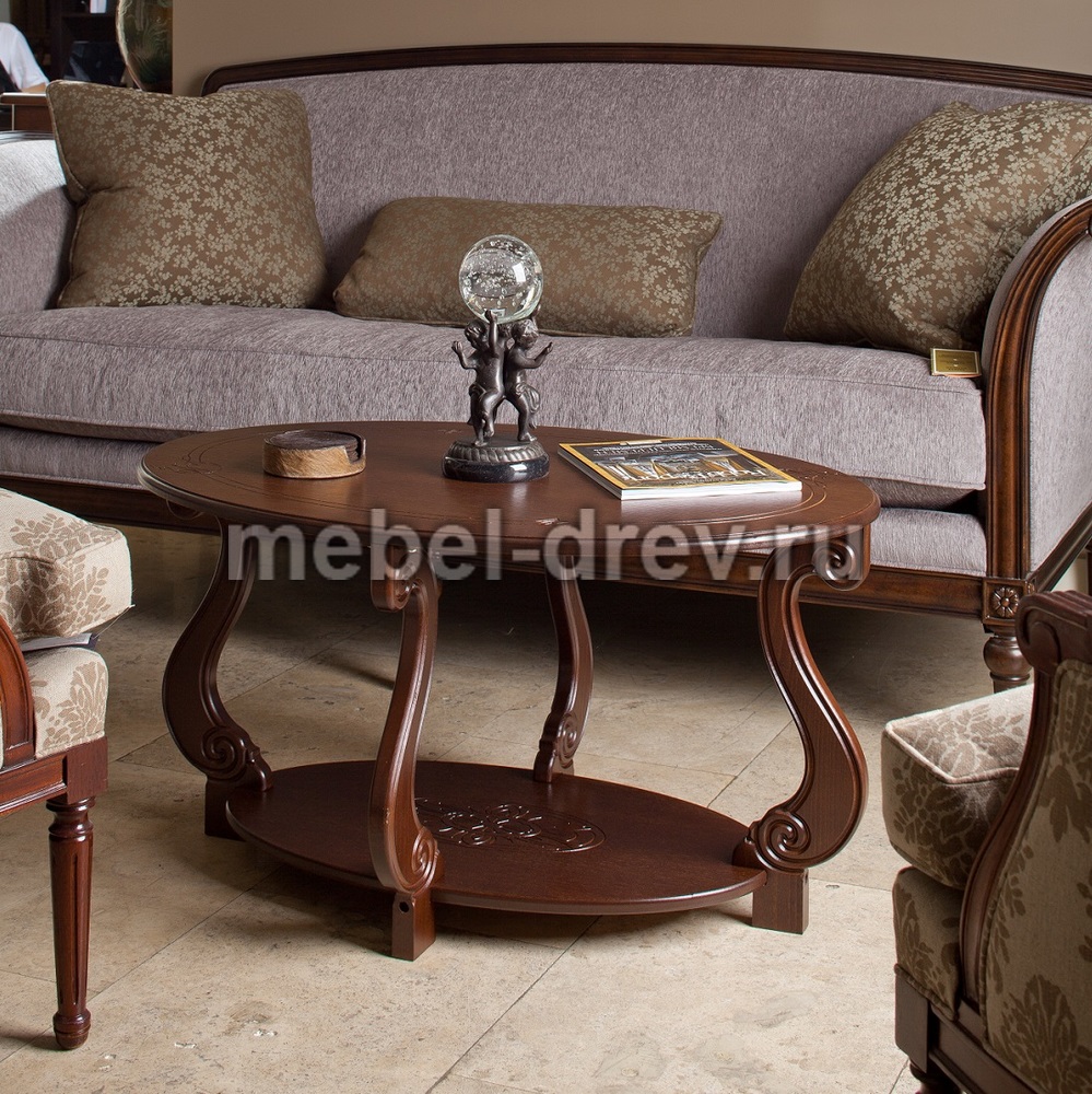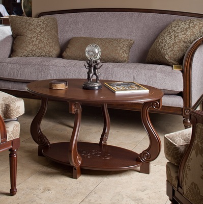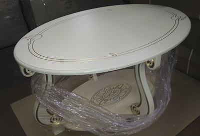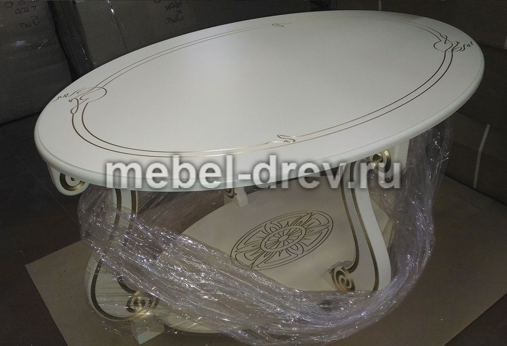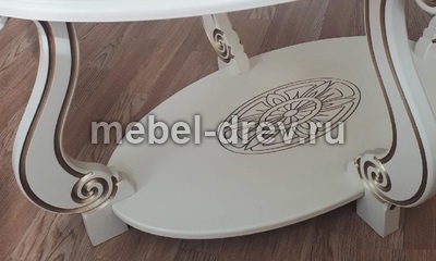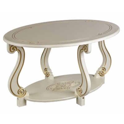 Журнальный столик в классическом стиле, украшен изящной гравировкой на столешнице и ножках. На подстолье также гравировка в виде классического медальона. Столик изготавливается в трех вариантах цвета: слоновая кость с золотом, венге с патиной и темно-коричневый без патины. Благодаря разнообразию цвета, столик подойдет к любой цветовой гамме интерьера: как классической приглушенной, так и к интерьеру в светлых, легких тонах. Стол упакован в одну коробку, легко собирается.-стол Овация-С.