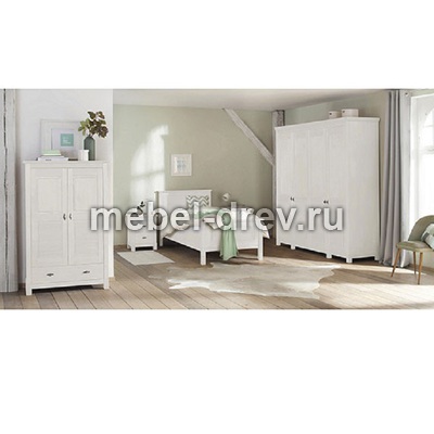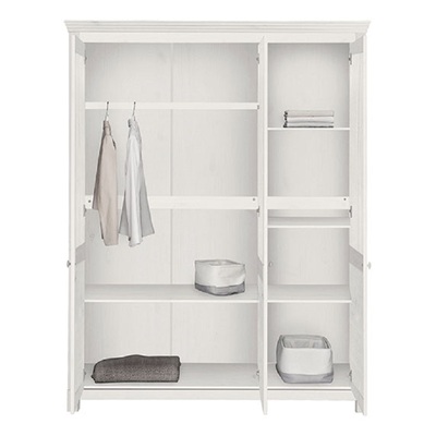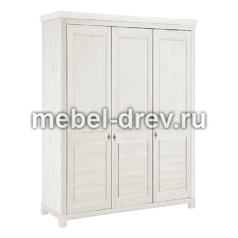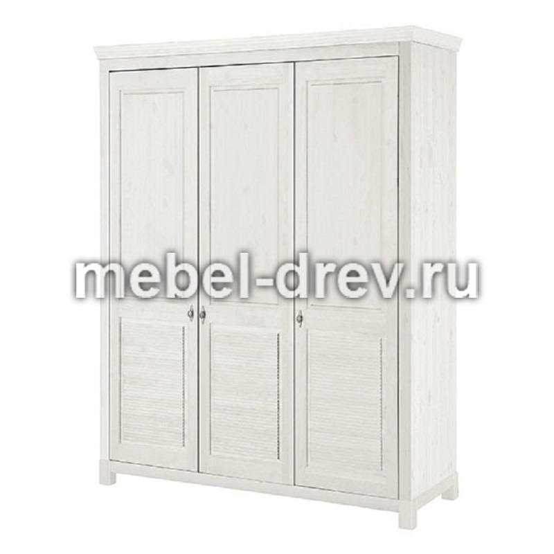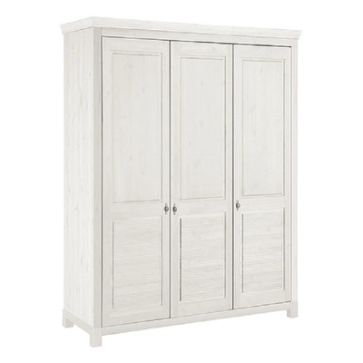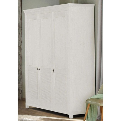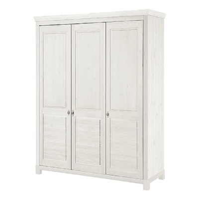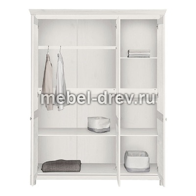Вместительный трехстворчатый шкаф Рауна 30 из натурального дерева. Шкаф разделен на 2 отделения, первое отделение сдвоенное, в нем размещены штанга и шляпная полочка, во втором отделении находится несколько полочек для хранения белья. Серию Рауна отличают прямые выверенные линии и правильные геометрические формы. Окраска изделия в белый цвет придает мебели легкость, дополняет стиль мебели качественная фурнитура немецкого производства. Коллекция Рауна окрашена лакокрасочными материалами на водной основе, они сохраняют натуральный вид древесины сосны и ее экологическую чистоту.