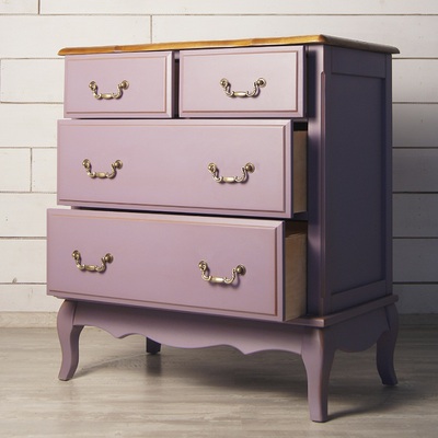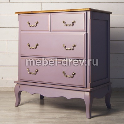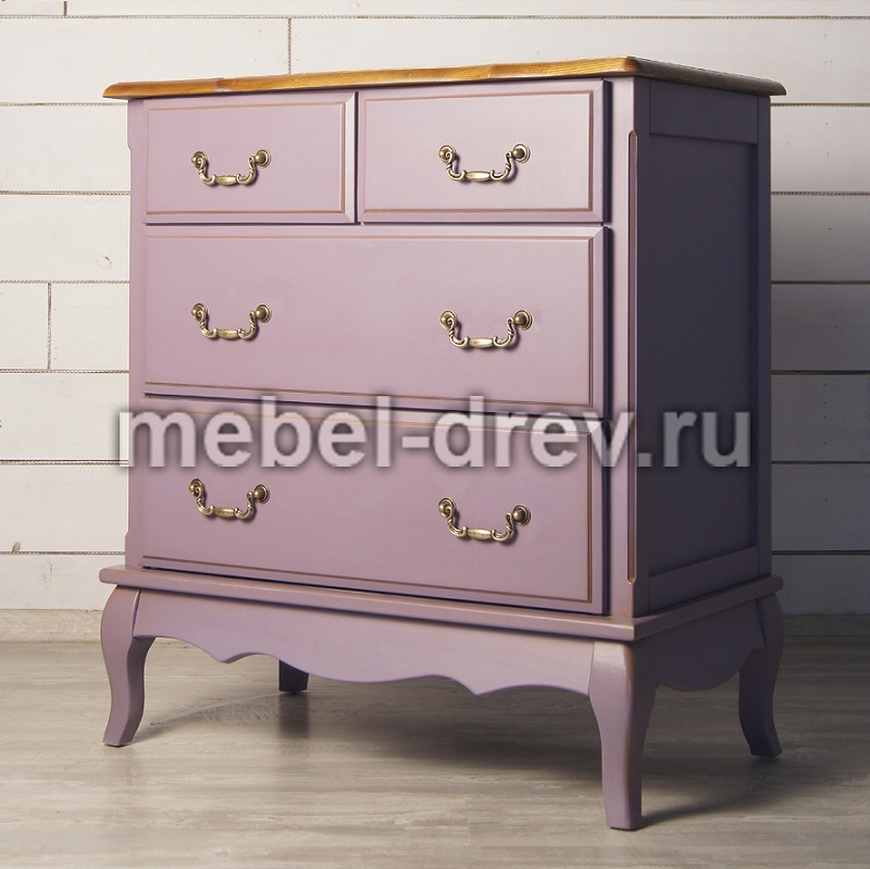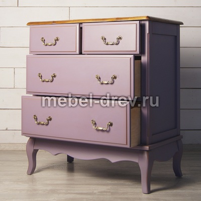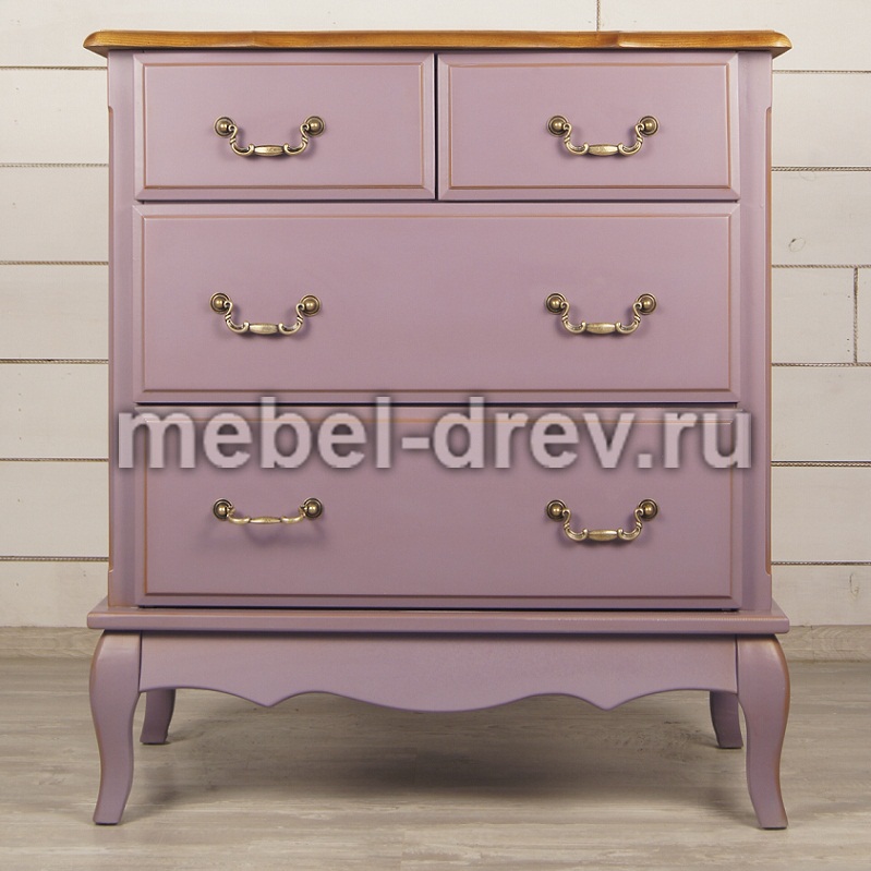 Изящный узкий комод Leontina/Леонтина на изогнутых ножках и с резным подстольем. Сделан в стиле Прованс, с четырьмя выдвижными ящиками. Комод изготовлен из натурального дерева: каркас-массив березы, столешница-ясень. Лавандовый цвет коллекции Леонтина-стильный, приятный цвет, который способен облагородить любой интерьер и украсить любую комнату.