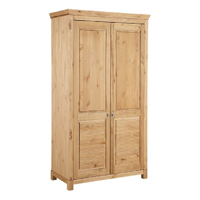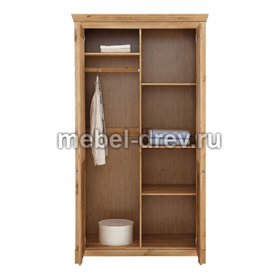 Двустворчатый шкаф для одежды Рауна 20 в натуральном цвете бейц. Изготовлен из массива сосны, производство белорусской фабрики ММЦ. У шкафа стандартное наполнение: штанга и шляпная полочка в одном отделении, и полочки во втором отделении. Серию Рауна отличают прямые выверенные линии и правильные геометрические формы. Окраска изделия в цвет бейц подчеркивает фактуру натурального дерева, дополняет стиль мебели качественная фурнитура немецкого производства. Коллекция Рауна окрашена лакокрасочными материалами на водной основе, они сохраняют натуральный вид древесины сосны и ее экологическую чистоту.