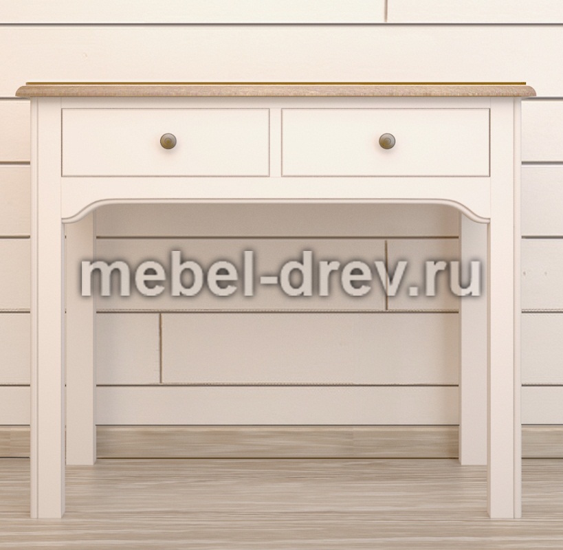 Консоль с двумя выдвижными ящиками, в стиле Прованс, из натурального дерева. Практична и надежна, изготовлена из массива березы, столешница-ясень. Консоль пригодится для обстановки любой комнаты, может использоваться как консоль, высокая небольшая тумба и как небольшой столик.