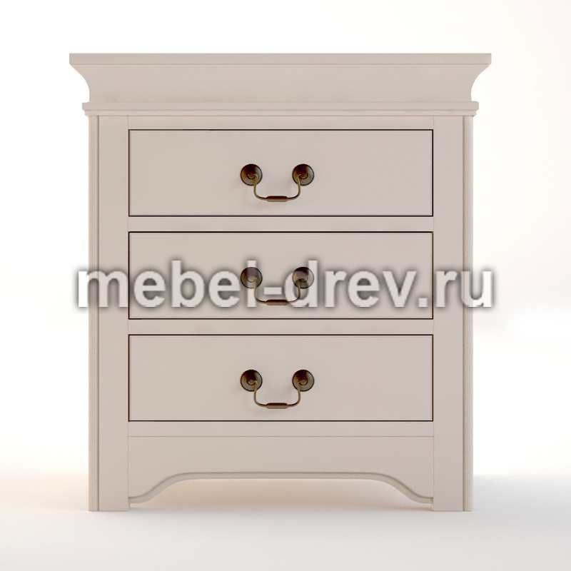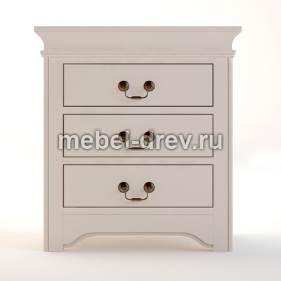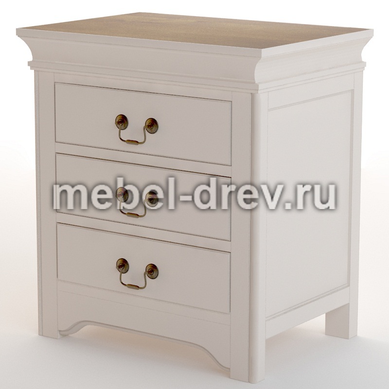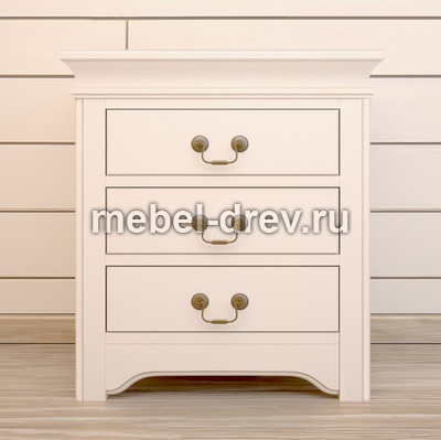 Прикроватная тумба с тремя выдвижными ящичками. Изготовлена из массива березы, в стиле Прованс, из коллекции мебели Оливия. Изделию придает изюминку литая фурнитура "под бронзу".