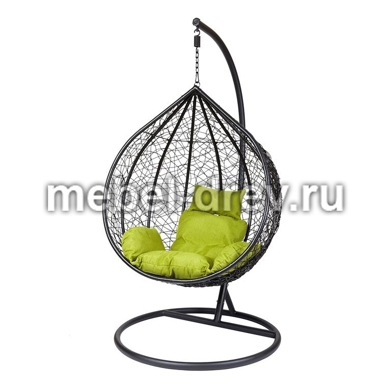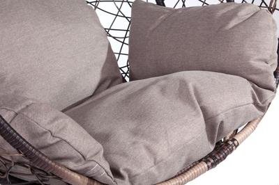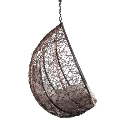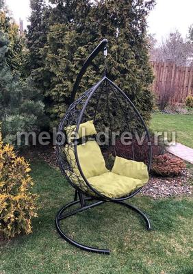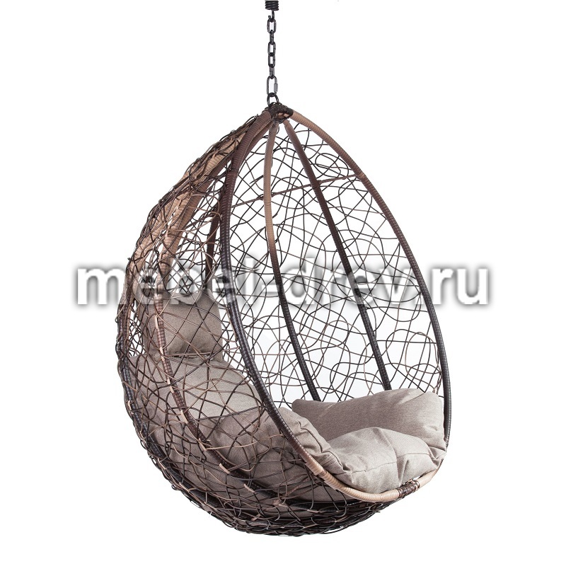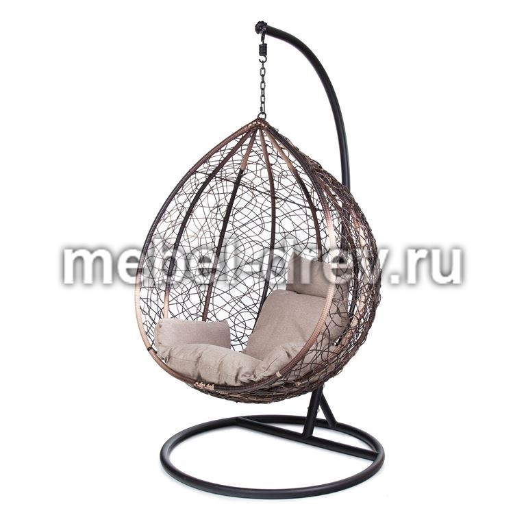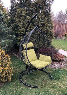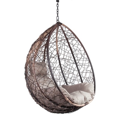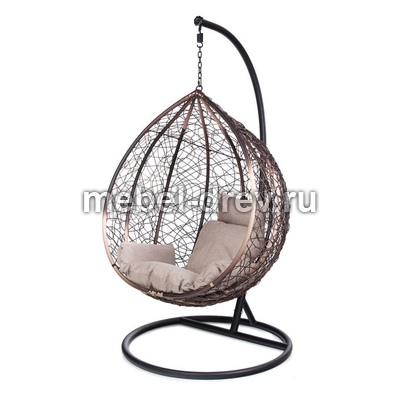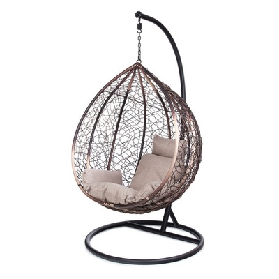 Комфортная и недорогая модель подвесного кресла в виде капли. Стойка и основание сделано из металла, качественная порошковая покраска, цвет черный, матовый. Оплетка-плоский искусственный ротанг коричневого цвета, подушка прилагается в комплекте, изготовлена из водоотталивающей ткани, с удобным подголовником.