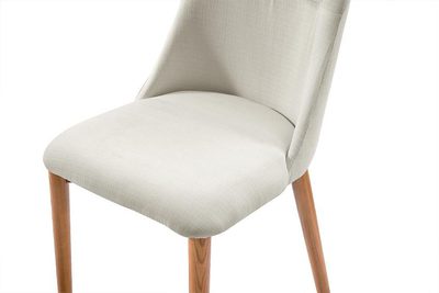 Стильный и удобный мягкий стул для кухни и гостиной. Ножки стула сделаны из дерева, закреплены на металлических креплениях, сиденье и спинка из ткани.