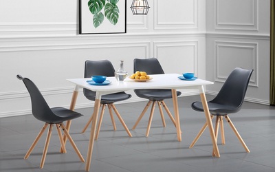 Удобный стильный стул для гостиной или кухни. Ножки стула сделаны из бука или металла, закреплены на металлических креплениях, сиденье и спинка из высококачественной экокожи. Стул надежен и удобен в уходе и использовании.