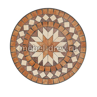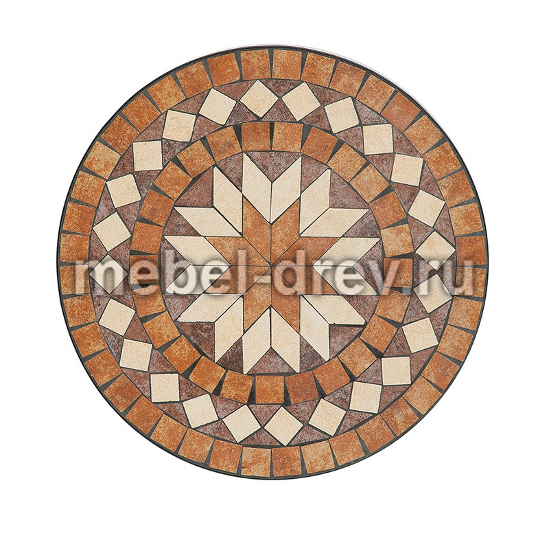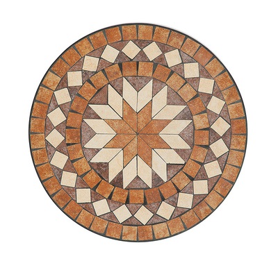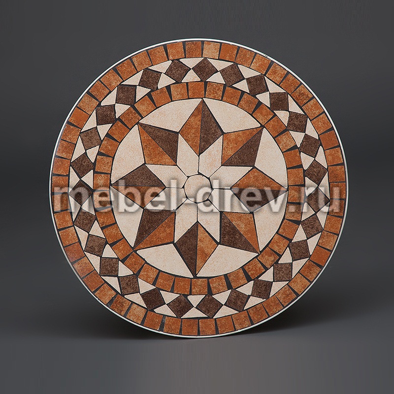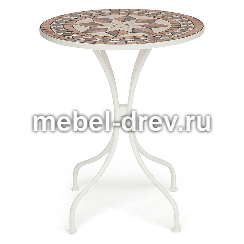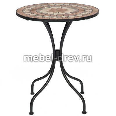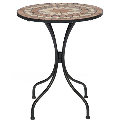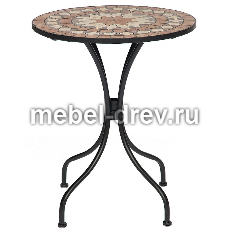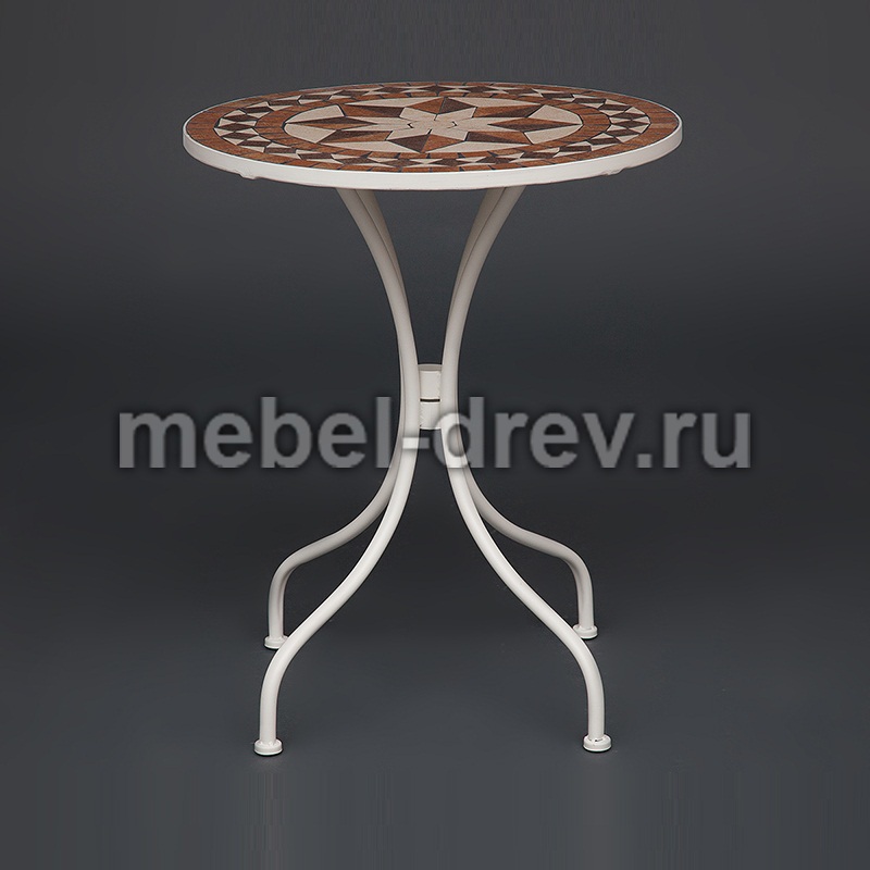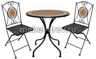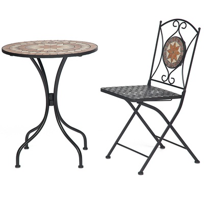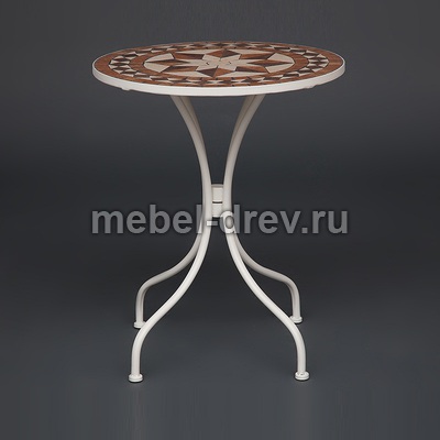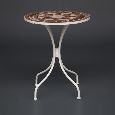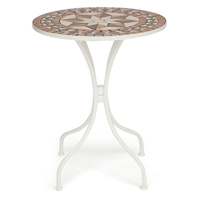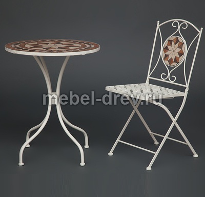 Изящный кованый столик для сада и летней веранды. Столешница столика украшена узором из плитки.