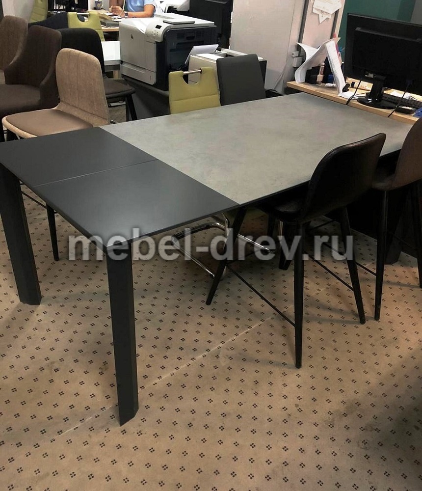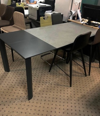 Удобный и практичный современный стол на металлокаркасе, со столешницей из керамики. Благодаря телескопическому механизму, роликам в ножках и боковой вкладке из МДФ, стол легко раскладывается. Вставка размером 48 см позволяет увеличить размер стола до 206 см.