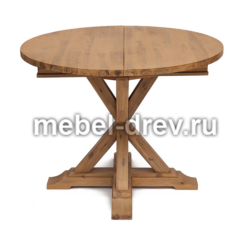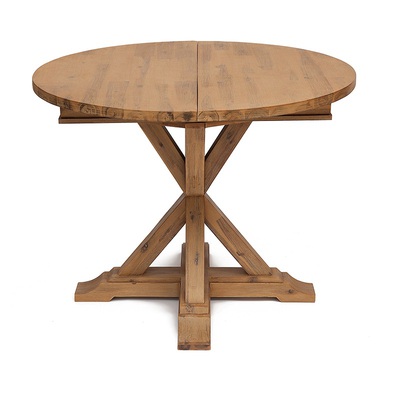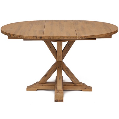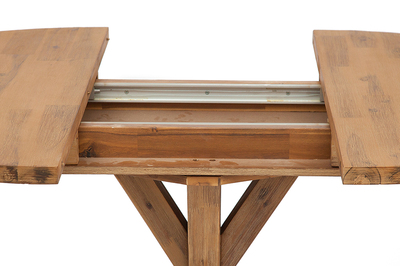 Круглый раскладной обеденный стол из натурального дерева, массива акации. Стол раскладывается с помощью вкладки 35 см до 135 см. Обработка поверхности столика подчеркивает стиль и красоту натурального дерева.