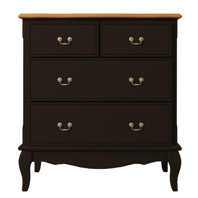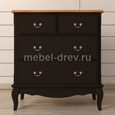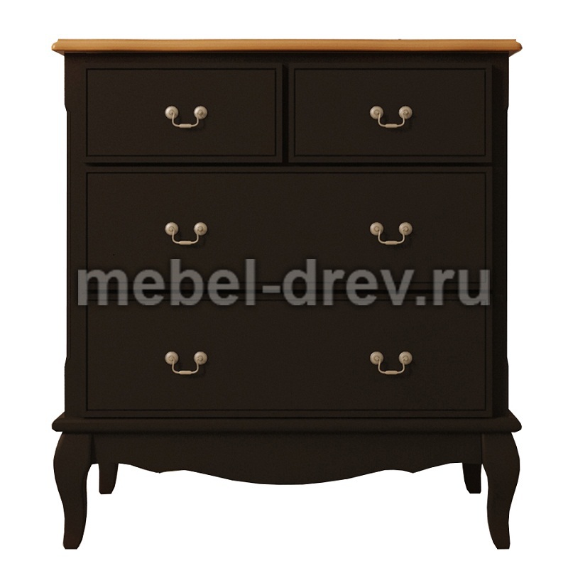 Эффектная мебель в благородном черном цвете, комод Leontina/Леонтина. Комод сделан на изогнутых ножках и с резным подстольем, с четырьмя выдвижными ящиками. Изготовлен из натурального дерева: каркас-массив березы, контрастная по цвету столешница-ясень.
