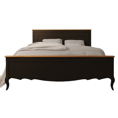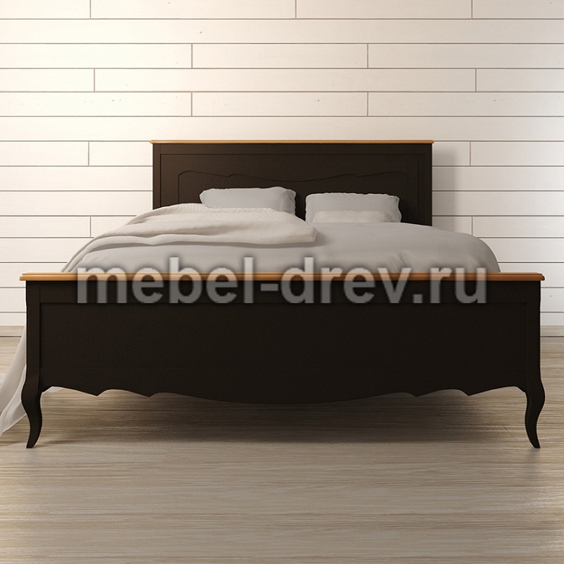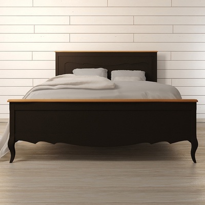 Эффектная дизайнерская двуспальная кровать в благородном черном цвете. Кровать сделана в стиле Прованс, из серии Leontina/Леонтина. Кровать изготавливается в двух популярных размерах спального места: 160х200 и 180х200. Изготовлена из натурального дерева: каркас-массив березы, контрастный цвет орех-ясень, основание для матраса-реечный переклад.