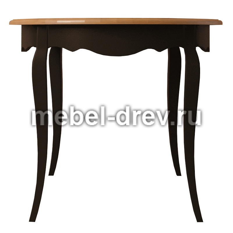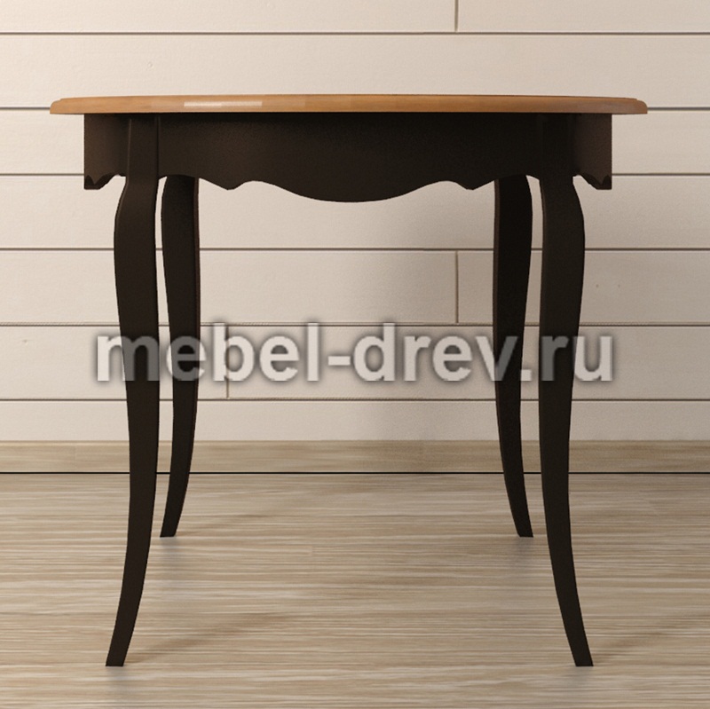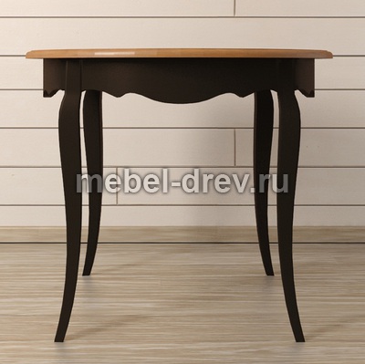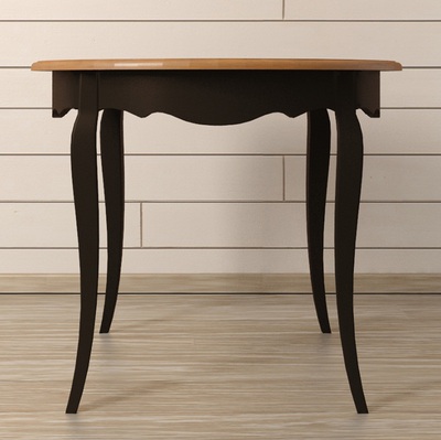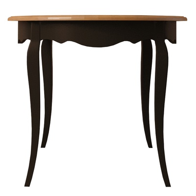 Круглый обеденный стол в эффектном черном цвете, со столешницей контрастного цвета, из серии Leontina/Леонтина. Стол сделан на изогнутых ножках и с резным подстольем, из натурального дерева: каркас-массив березы, столешница-ясень. Стол круглый, НЕ раскладной.