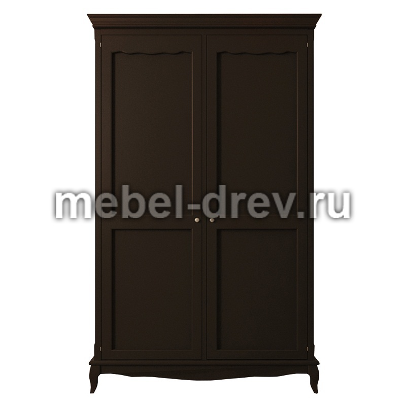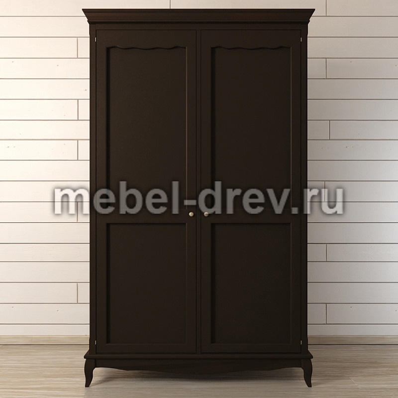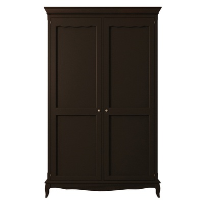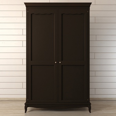 Черная мебель в интерьере позволяет создать шикарный и стильный дизайн квартиры и загородного дома. Небольшой двустворчатый распашной шкаф для платья и белья Leontina (Леонтина). Шкаф на изогнутых ножках, с резным карнизом. Изготовлен из натурального дерева: каркас-массив березы.