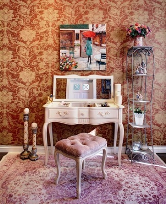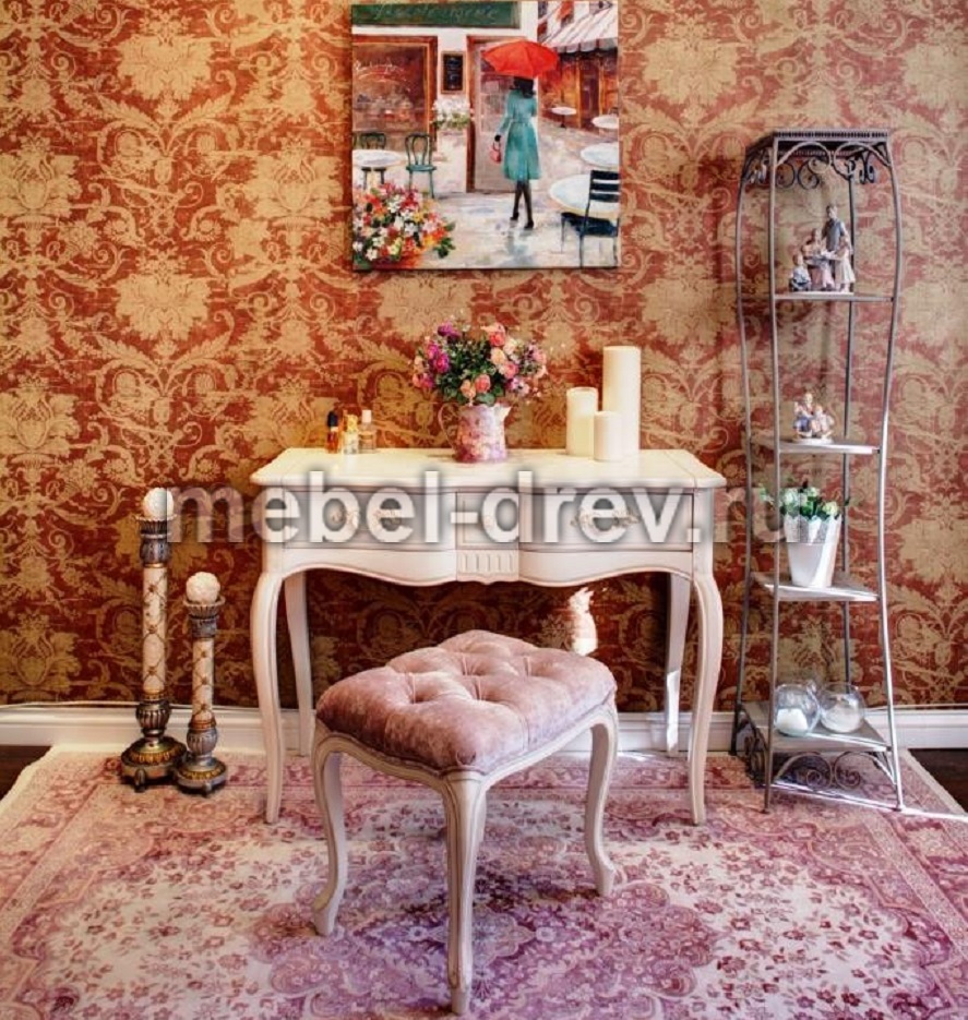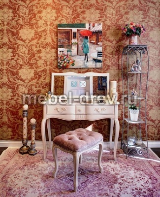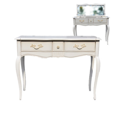 Очаровательный туалетный столик в стиле Прованс из коллекции Provence. Сделан из натурального дерева, массива березы, в белом цвете с эффектом старения. Поверхность столика искусственно состарена, придавая мебели антикварный вид настоящего прованса. У столика зеркало закреплено на внутренней панели столешницы, под столешницей также находятся отделения для мелочей.