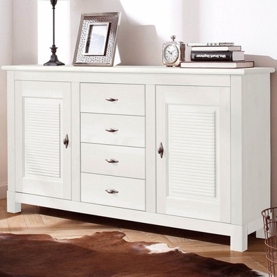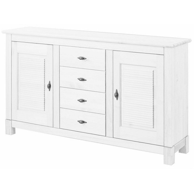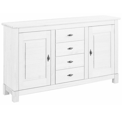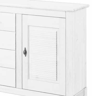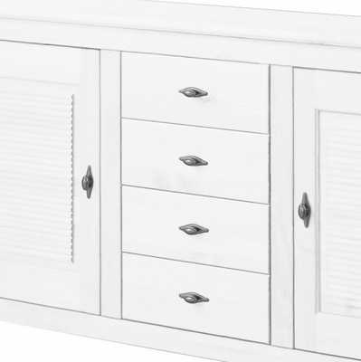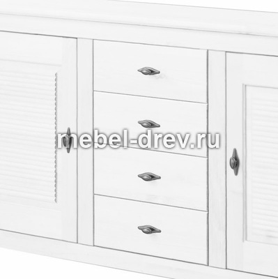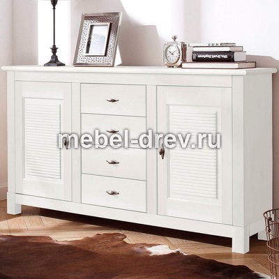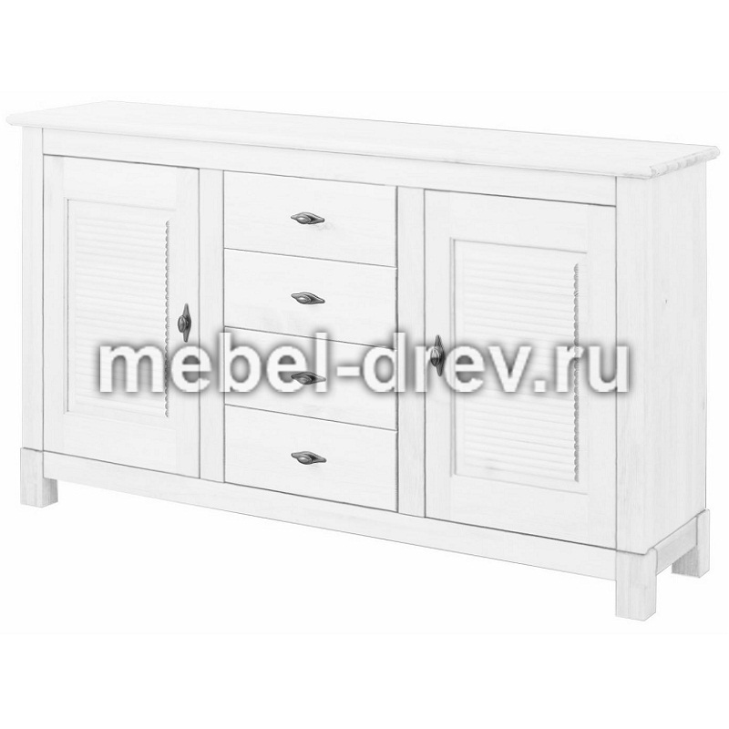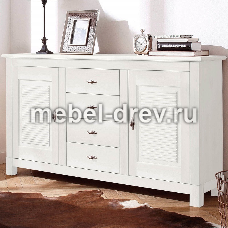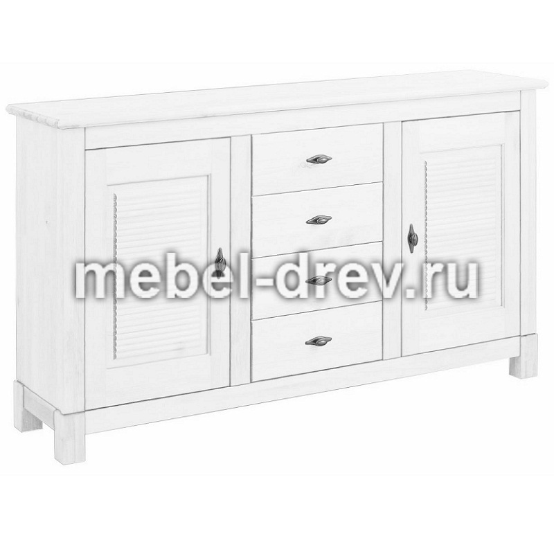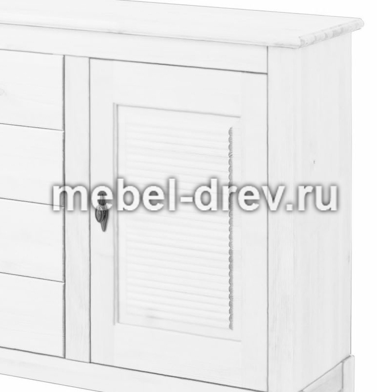 Вместительный классический комод из серии Рауна. Изготовлен из натурального дерева, массива сосны. Мебель серии Рауна отличают прямые, строгие линии, правильные геометрические формы. Легкий светлый цвет комода придется по душе любителям классической мебели. У комода Рауна четыре удобных выдвижных ящика, которые обеспечат удобное хранение мелких предметов, а также полочки за боковыми распашными дверцами.