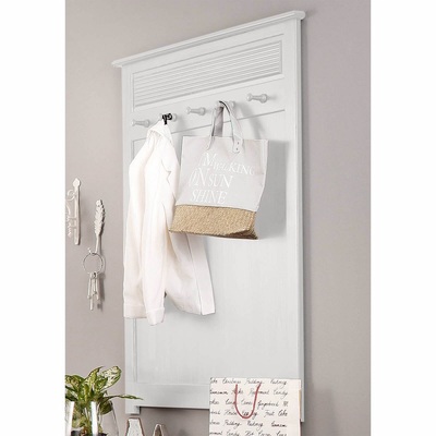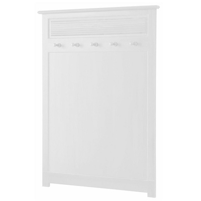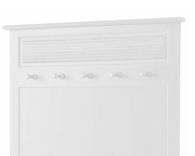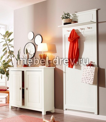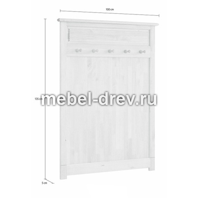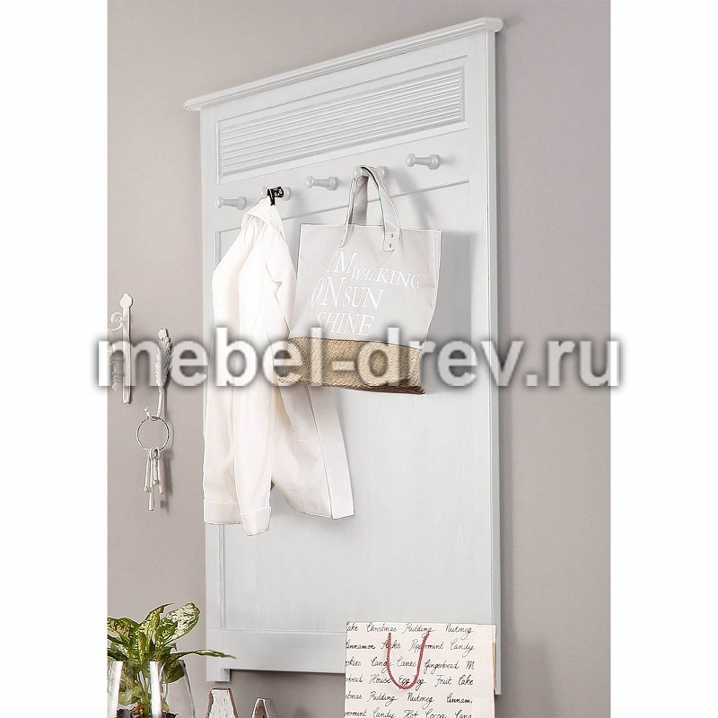 Настенная вешалка для прихожей, из коллекции мебели Рауна белорусской фабрики ММЦ. Вешалка прекрасно сочетается с подходящими по цвету шкафами, комодами и другими предметами мебели, отлично смотрится в прихожей в белом цвете. Вешалка сделана из натурального дерева и имеет красивую светлую отделку, которая демонстрирует красоту натурального дерева. В производстве использованы лакокрасочные материалы на водной основе, которые сохраняют натуральный вид древесины и ее экологическую чистоту.