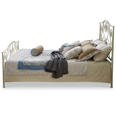 Стильная металлическая кровать, сделанная с применением изящной ажурной ковки. Кровать надежна, прочна, кованый металл высокого качества. Нежно-кремовый цвет делает кровать и спальню легкой и воздушной. Кровать изготавливается в 2 вариантах спального места: 160х200 и 180х200.