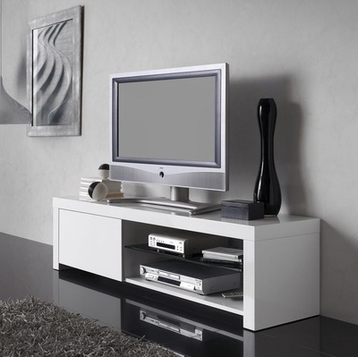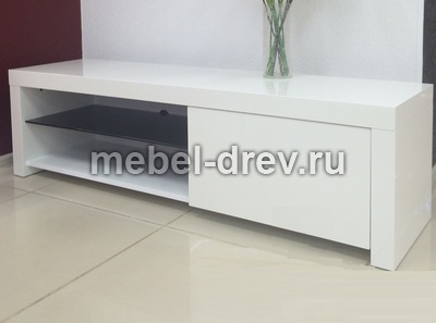Компактная тумба под ТВ DUPEN легко впишется в современный интерьер. Белый глянцевый цвет тумбы поможет удачно сочетать ее с любыми другими предметами интерьера в стилях минимализм и модерн. Изготовлена из качественного лакированного МДФ, у тумбы одна стеклянная полочка, разделяющая пространство на 2 секции для дополнительной видео-аудио аппаратуры. Также тумба оборудована ящиком под различную мелочёвку, который удобно открывается одним нажатием с помощью механизма типа Push.
