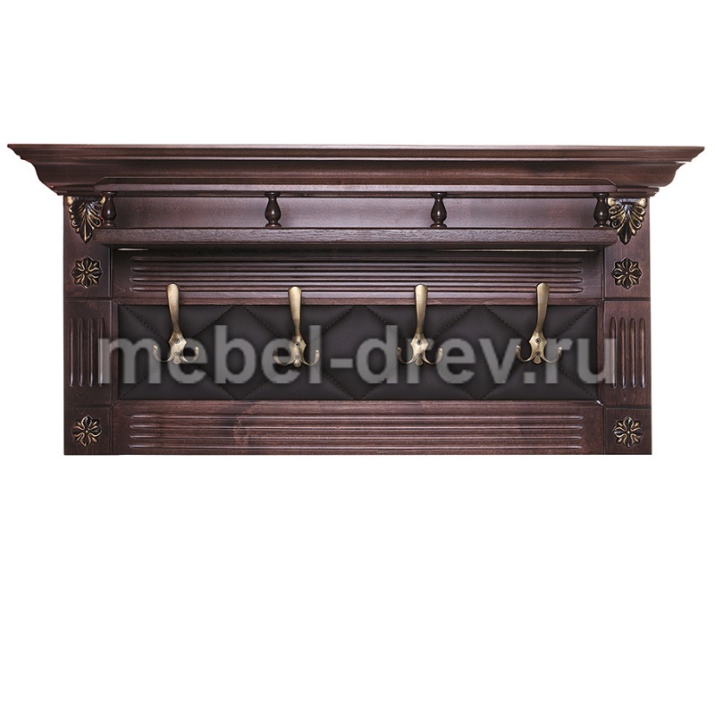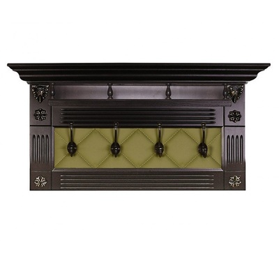 Небольшая вешалка Сильвия Н5 предназначена для создания зоны прихожей в традиционном классическом стиле. Вешалка с 4 крючками, украшают вешалку пилястры по бокам, с декоративными патинированными элементами. Качественная экокожа также прострочена декоративной строчкой ромбами, придавая мебели изысканный вид.