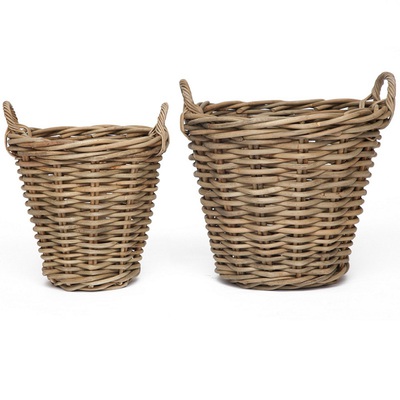 Набор из двух корзин с ручками из натурального плетеного ротанга.